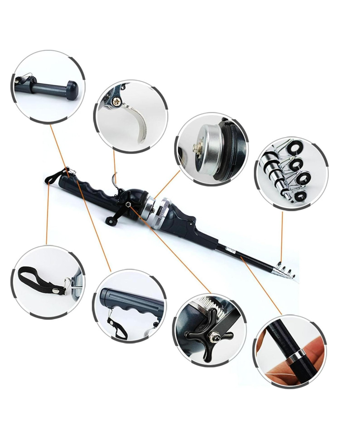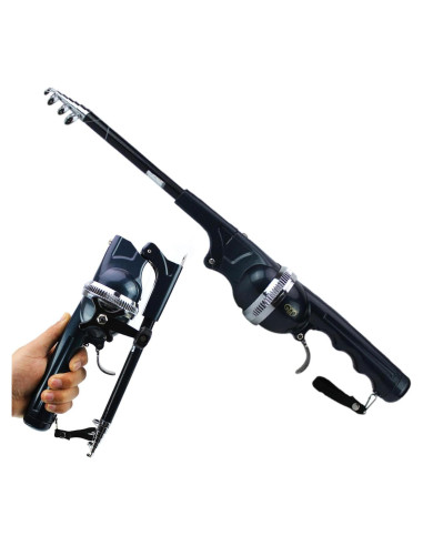Disfruta de la conveniencia de un conjunto de pesca todo en uno con nuestra caña de pesca portátil de bolsillo. Su diseño innovador combina la caña y el carrete, permitiéndote llevar menos equipo mientras maximizas tu experiencia de pesca. Kit de Caña de Baitcasting, que incluye una caña de pesca telescópica, un carrete de pesca con línea de pesca. Diseño de apariencia excepcional, portátil y conveniente. Una mano sostiene el mango, el dedo índice presiona el gatillo, la línea estará en una condición libre. La otra mano tira de la línea en el carrete, la línea puede ser sacada. NO ENCONTRARÁS ESTE TIPO DE VALOR EN NINGÚN OTRO LUGAR. Una mano sosteniendo el mango, la otra mano con el pulgar presiona hacia abajo la columna conectada del asiento de resorte. Luego se envuelve con la correa elástica del anillo colgante. Se puede plegar muy bien.