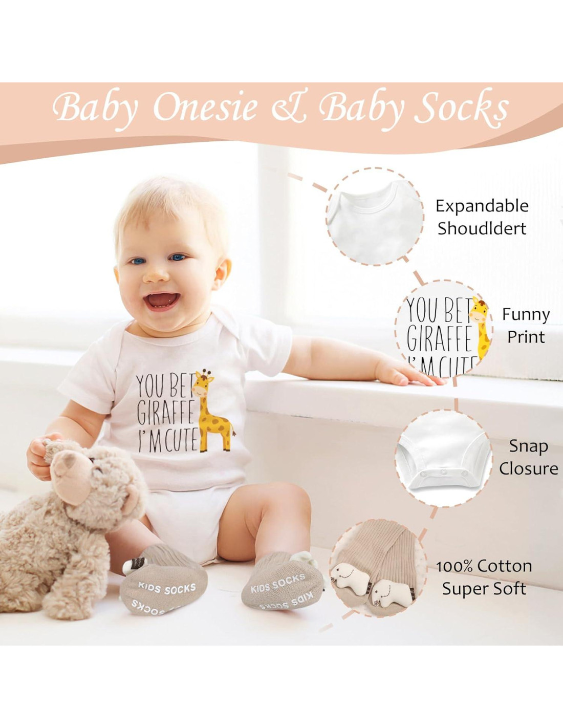 - Regalos para Bebés de 100% Algodón: Nuestra suave y transpirable manta de muselina de algodón (120 cm x 120 cm) envuelve suavemente a tu bebé en un abrazo acogedor-igual que los brazos de Mamá. También se puede usar como cubierta de lactancia, paño de eructo, manta para tiempo de pancita o manta de almacenamiento, ¡lo que la convierte en un imprescindible para cualquier recién nacido! El body 'Apuesto a que soy lindo' añade un toque juguetón, haciendo que tu pequeño sea el bebé más genial. ¡Combínalo con los adorables calcetines de elefante para más diversión y encanto! Esto hace un regalo muy práctico para baby shower!