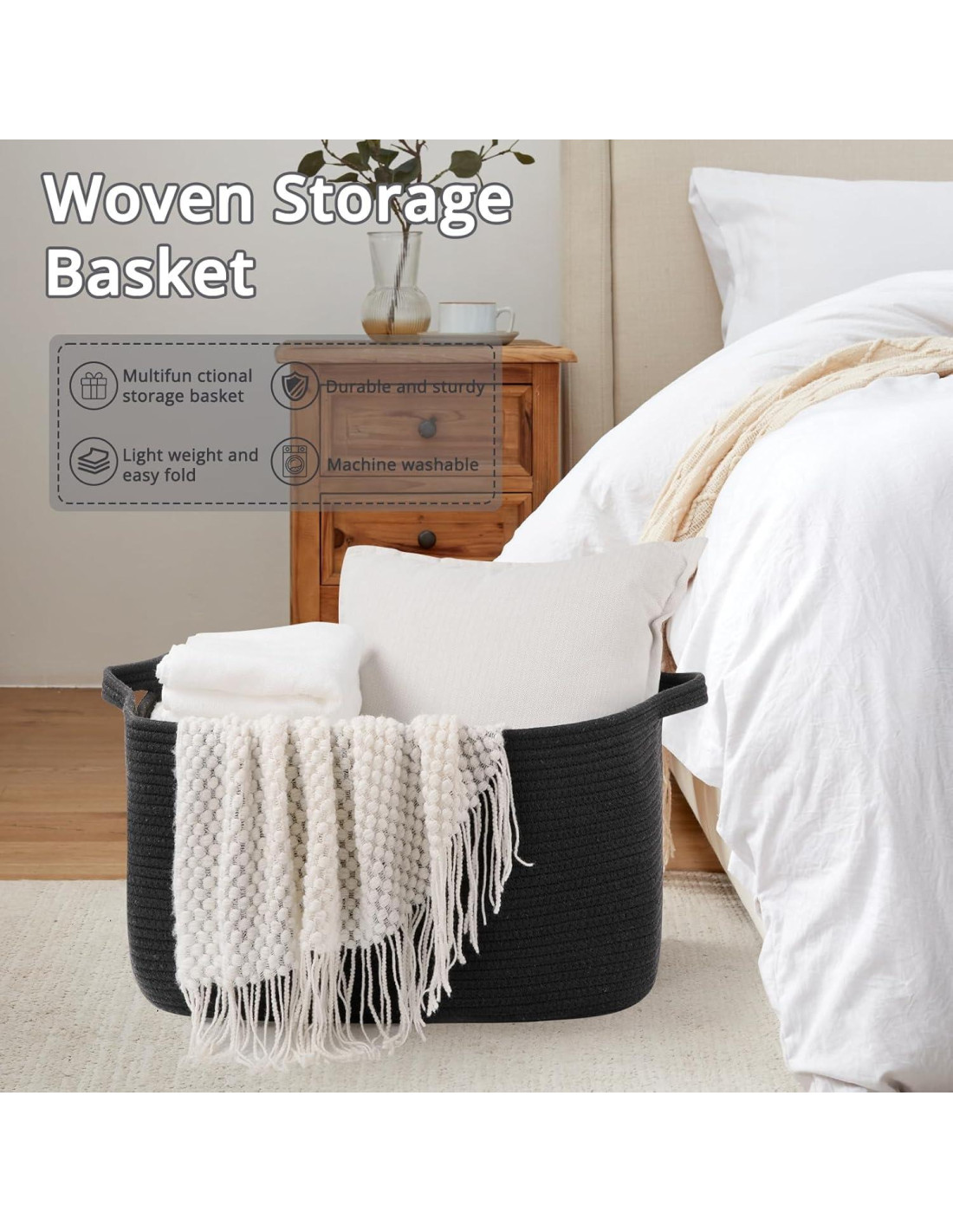 - Material Natural Premium: La cesta de lavandería grande está hecha de cuerda de algodón natural, suave y amigable con la piel sin bordes afilados. No te preocupes por lastimar a tus hijos, mascotas o rayar tus pisos o muebles