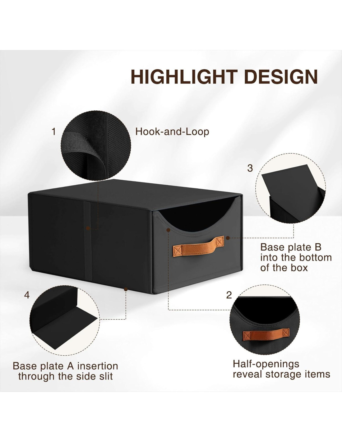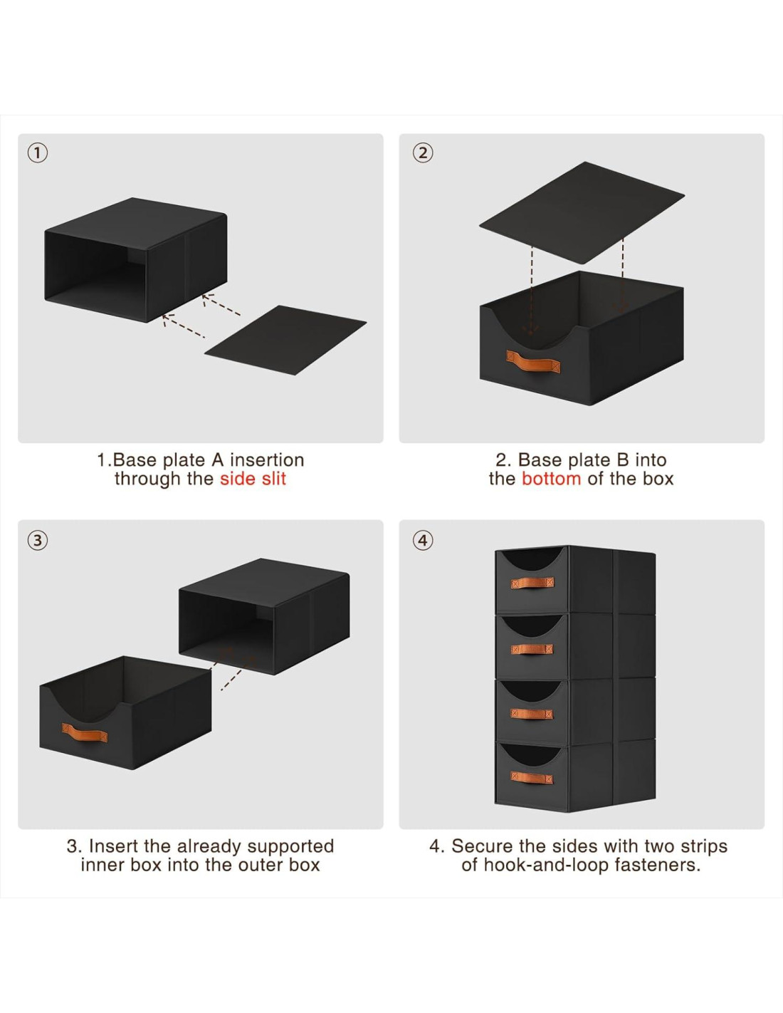 - [Cajones Apilables Estables] Con paneles reforzados y cierres de cinta mágica en los lados, estos cajones de almacenamiento apilables se mantienen alineados de manera segura. Ya sea apilados 2 o 4 de alto, mantienen su forma y función como unidades duraderas de organizador de cajones para ropa