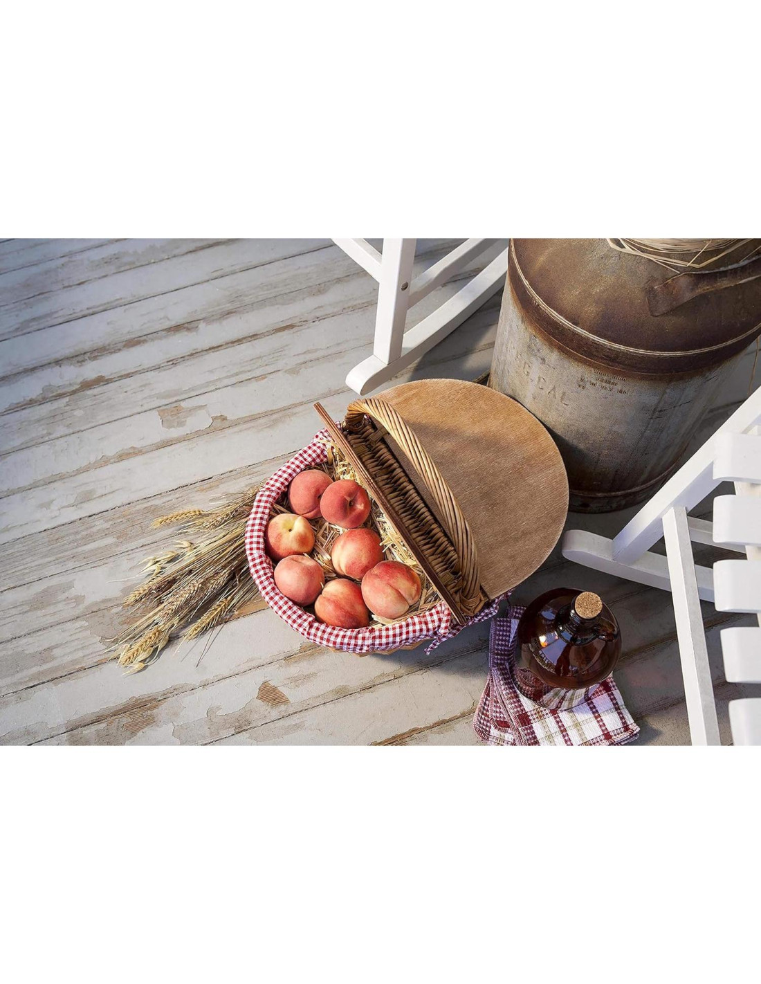 Directamente de un cuento de hadas, la Cesta de Picnic Vintage Country con Tapa es una clásica cesta de picnic de mimbre pequeña con tapa de inspiración inglesa para 2. Con un hermoso cuerpo de sauce tejido a mano, un resistente asa de agarre y transporte, un forro de poliéster/cotón lavable, y una tapa dividida de madera para entrada dual que también puede usarse como superficie nivelada para tazas y platos, esta cesta de picnic aporta una sensibilidad vintage elegante. ¡Esta cesta incluso ofrece una oportunidad para la autoexpresión si eres del tipo creativo/DIY - puedes pintar, tiza o dibujar en la tapa para personalizar tu cesta y hacerla 100% tuya!