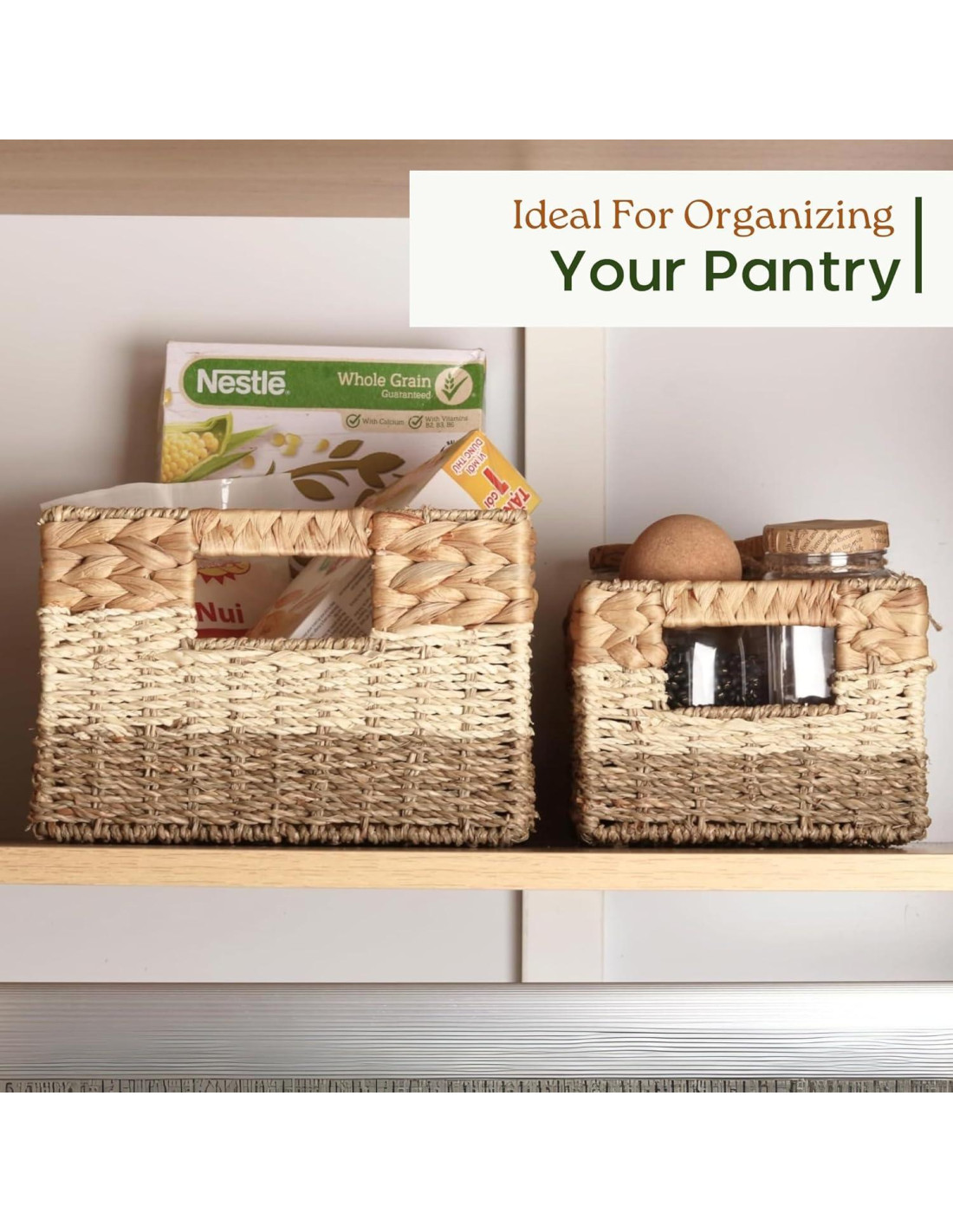 - Debido a su naturaleza hecha a mano, cada cesta cuadrada de jacinto puede variar ligeramente en forma, tamaño, color; Adecuada solo para uso en interiores; Todas las nuevas cestas de almacenamiento de mimbre tienen un olor natural particular de fibras naturales que desaparece gradualmente.
