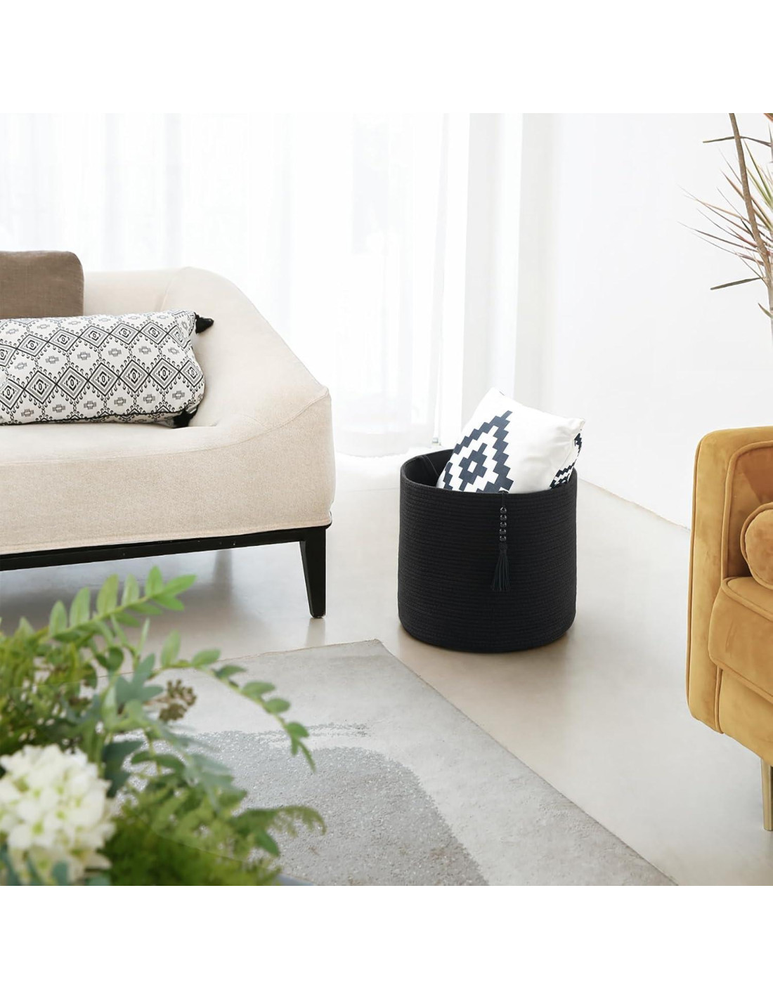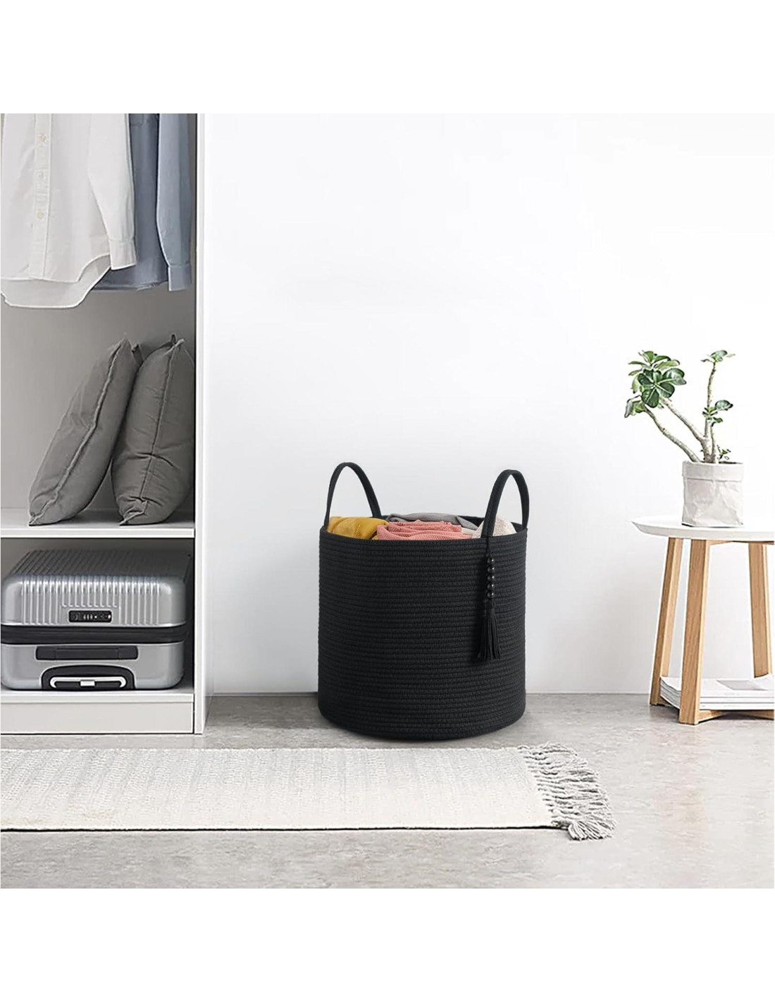 - Uso múltiple: Cesta de almacenamiento ideal para poner juguetes de perro, mantas, zapatos de niños, ropa, toallas, almohadas decorativas, sombreros, bufandas, libros, revistas, cosméticos, cables de auriculares, control remoto, tarjeta magnética, llaves, almacenamiento de notas, verduras, frutas, CD, flores y más suministros para el hogar. Se adapta a una mesa de noche, estante de armario, estantería, escritorio, suelo, etc.
