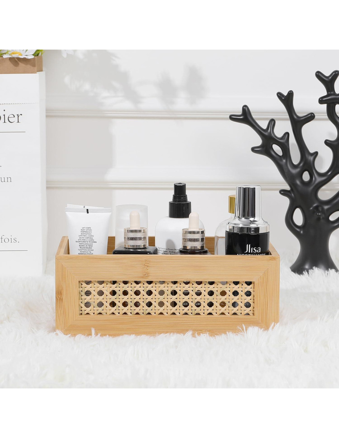 - Paquete de 1 cesta de ratán tejida. Tamaño: 10" x 6" x 4" (25.4 cm x 15.24 cm x 10.16 cm) (largo x ancho x alto). Ideal para almacenar toallas, papel higiénico, libros, manualidades, bocadillos, productos de maquillaje y muchos otros artículos diversos.