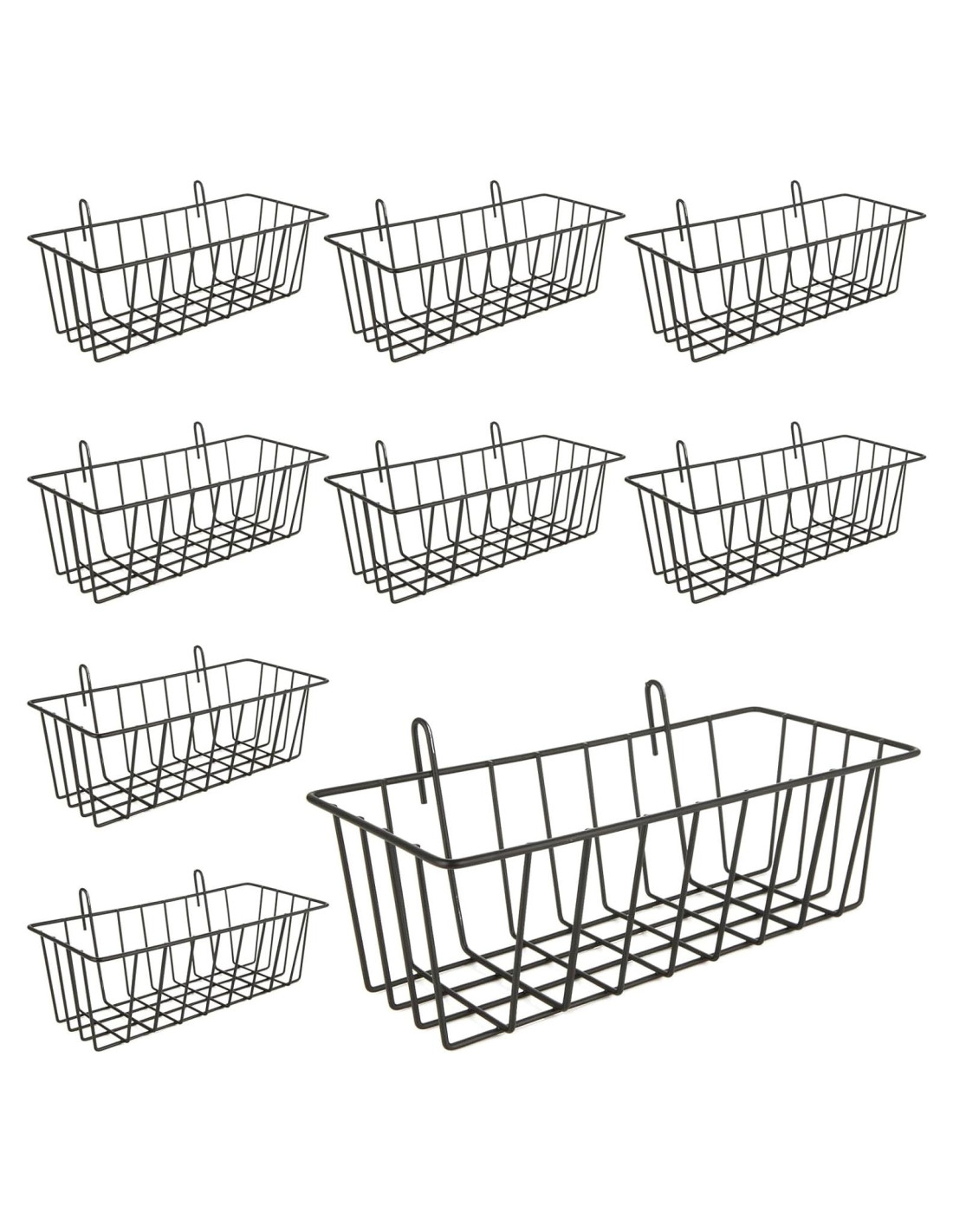 - [Buena Relación Calidad-Precio] El paquete incluye 10 paquetes de accesorios de rejilla cesta negra. Cada dimensión de la pequeña cesta de alambre negra es 22.86 x 10.16 x 7.87 cm. Por favor, mide los gabinetes antes de la compra para la mejor instalación