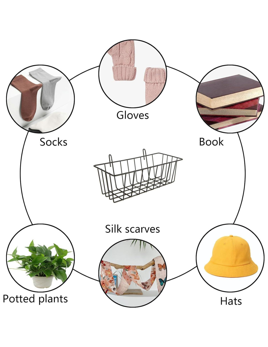 - [Diseño Elegante] El diseño abierto de la cesta de alambre para rejilla de pared permite ver fácilmente los artículos dentro, conveniente para que encuentres los artículos que necesitas, ahorrándote mucho tiempo y energía. La cesta colgante de pared tiene un diseño simple con bordes redondeados, elegante y hermosa, y puede combinar perfectamente con tus muebles