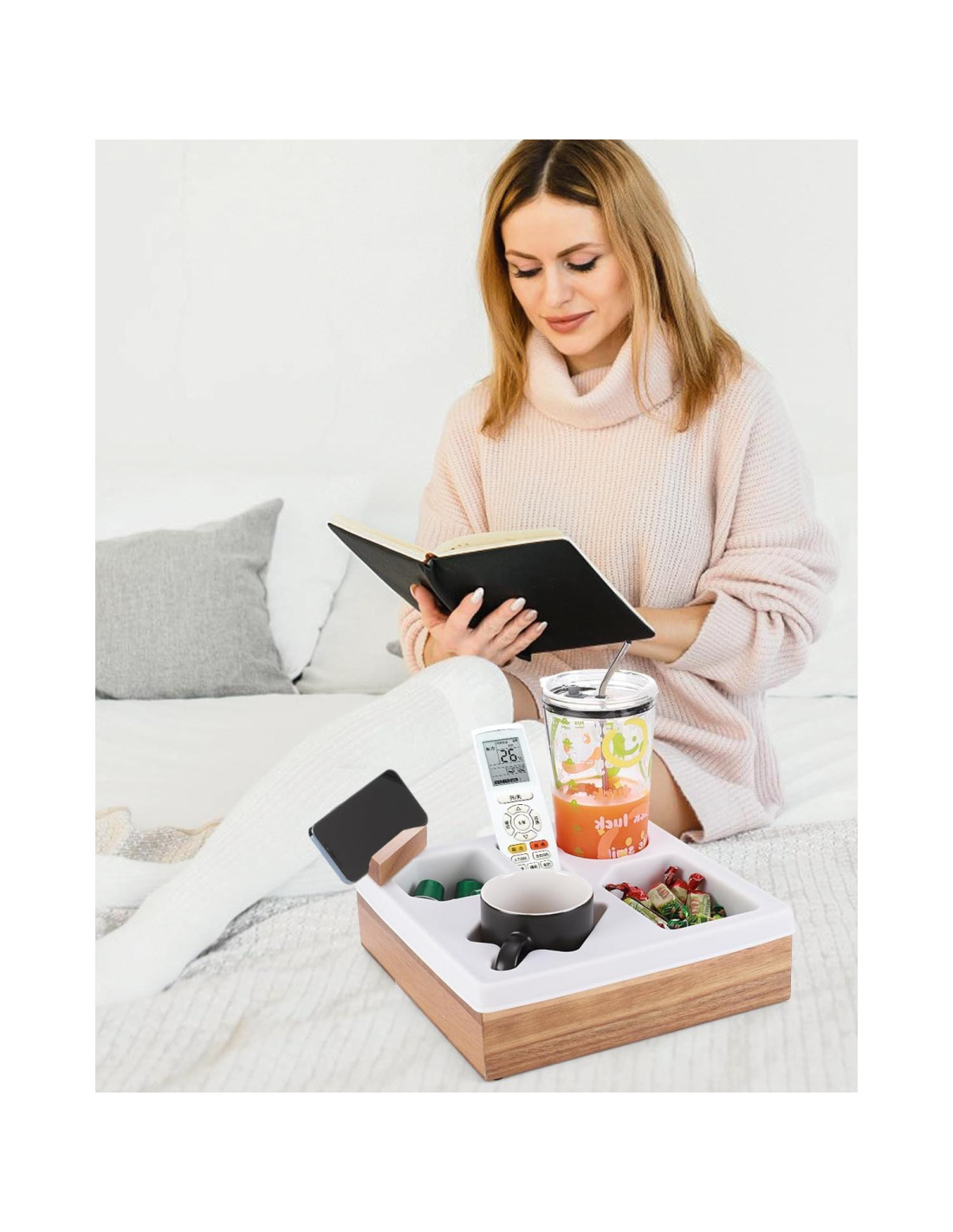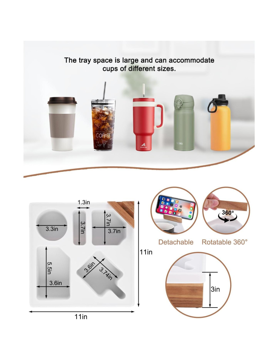 - Uso versátil: Esta bandeja para soporte de taza de sofá tiene varios escenarios de uso; puedes usarla en el asiento trasero del coche, en el sofá, en la cama, en el escritorio de la oficina, en un yate y durante picnics. Este caddy a prueba de derrames con soporte para taza no solo puede sostener bocadillos y bebidas, sino también almacenar pequeños artículos que se dispersan fácilmente como joyas y medicamentos. Creo que las mamás ocupadas y los pacientes que pasan largos períodos en la cama también necesitan este soporte para taza de sofá para tener todo al alcance