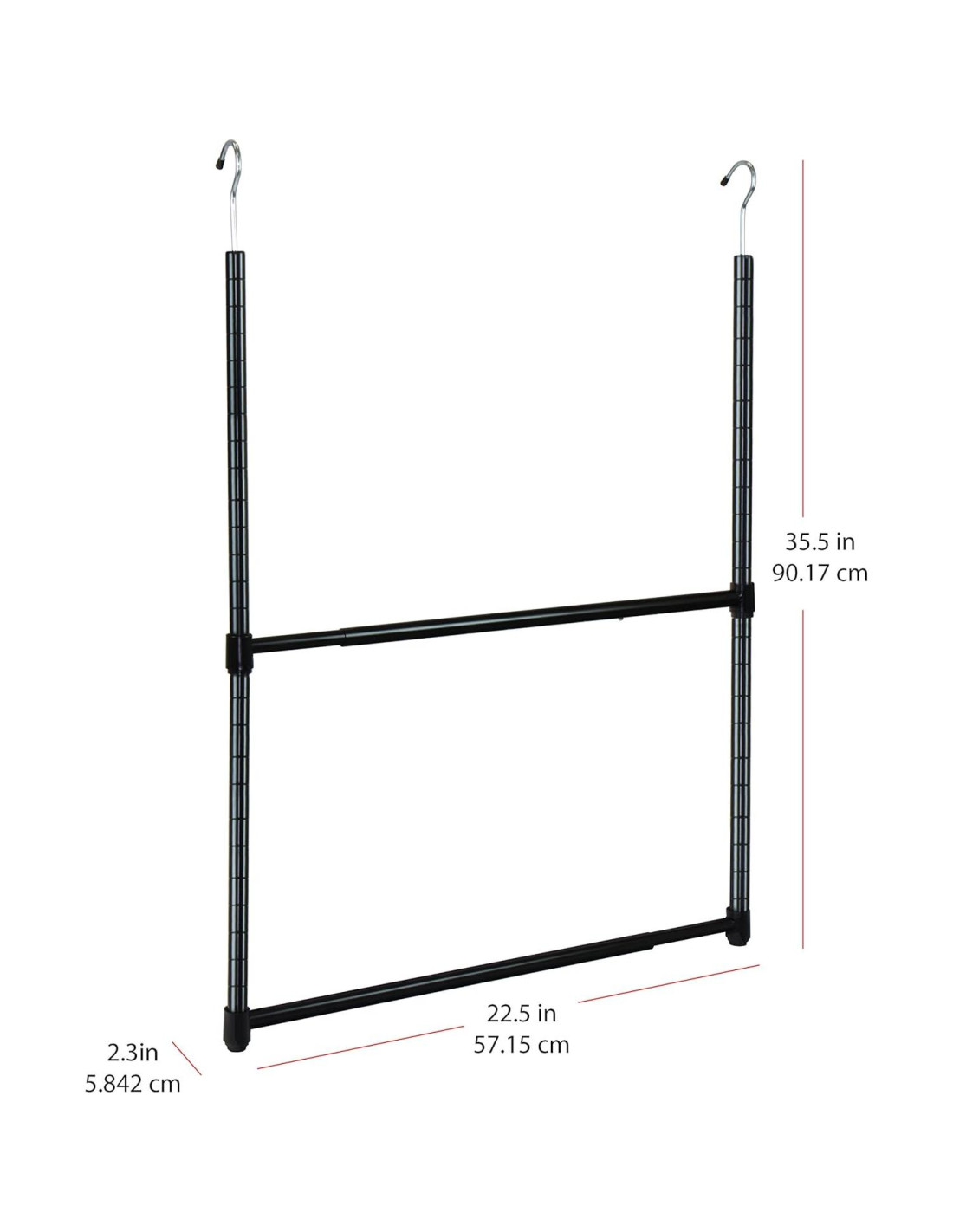 ¡Duplica instantáneamente el espacio de almacenamiento de tu armario sin complicaciones! Hecha de metal, la Barra de Colgar Ajustable Portátil de 2 Niveles Oceanstar no solo es duradera, sino que está diseñada específicamente para acomodar fácilmente tus necesidades de almacenamiento en el armario. Las barras pueden funcionar de ambas maneras, ya que son ajustables a la altura deseada y también expandibles si se necesita más ancho. La Barra de Colgar Oceanstar se puede mover y colocar fácilmente en cualquier barra de armario estándar. Úsala en casa o para viajar a un hotel y crear espacio. Organizar y crear espacio en el armario nunca ha sido tan fácil y sin esfuerzo. La Barra de Colgar Ajustable de 2 Niveles Oceanstar es la solución perfecta para tus problemas de almacenamiento en el armario!