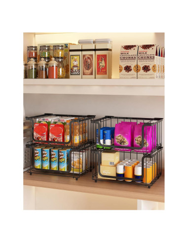 - [Montaje Rápido, No Se Requieren Herramientas] ¡No se necesitan tornillos ni herramientas! Estas cestas de alambre son fáciles de apilar y configurar en minutos. Las almohadillas de goma evitan deslizamientos o rayones en las superficies.