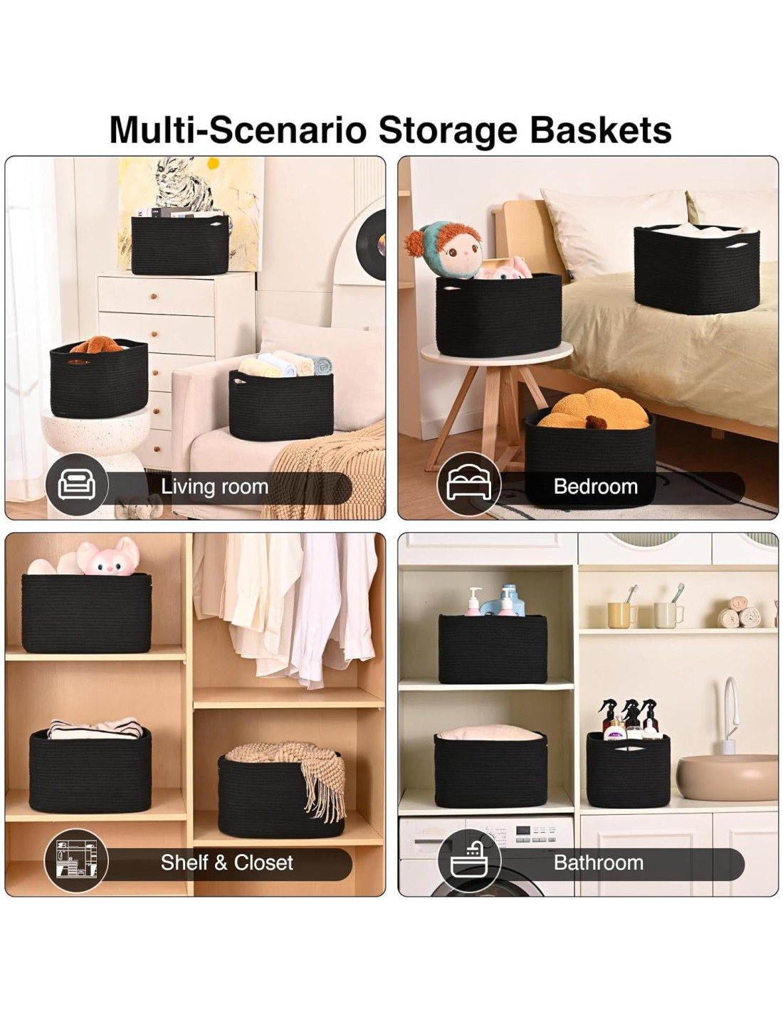 - Aplicaciones Versátiles: Ya sea que desees organizar tus estantes, armario, toallas, juguetes, sala de estar, dormitorio, guardería u oficina, nuestra cesta de almacenamiento negra es la opción perfecta. Es una elección ideal para la organización del hogar, viajes y necesidades de almacenamiento en la oficina