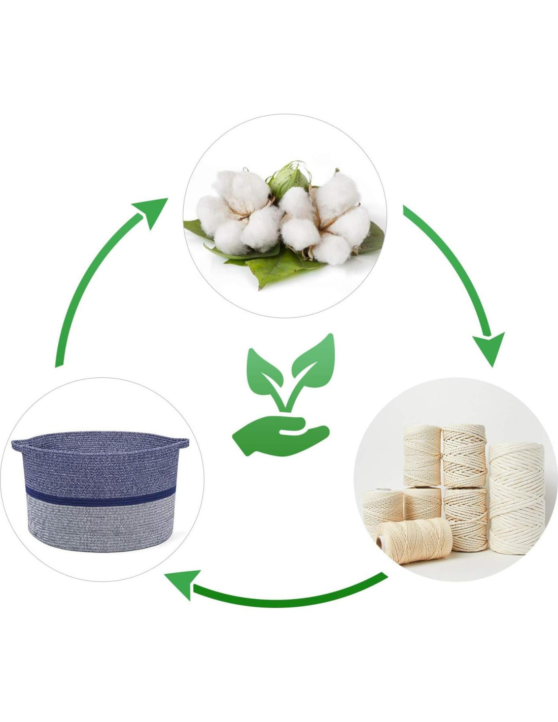 - Cesta de Cuerda de Algodón de Alta Calidad. Nuestras cestas tejidas para almacenamiento están hechas de cuerdas de algodón tejidas naturales, ecológicas. La calidad de la mano de obra asegura que no haya superficies afiladas o duras en esta cesta tejida, por lo que podrías usarla para tus bebés, niños y mascotas.