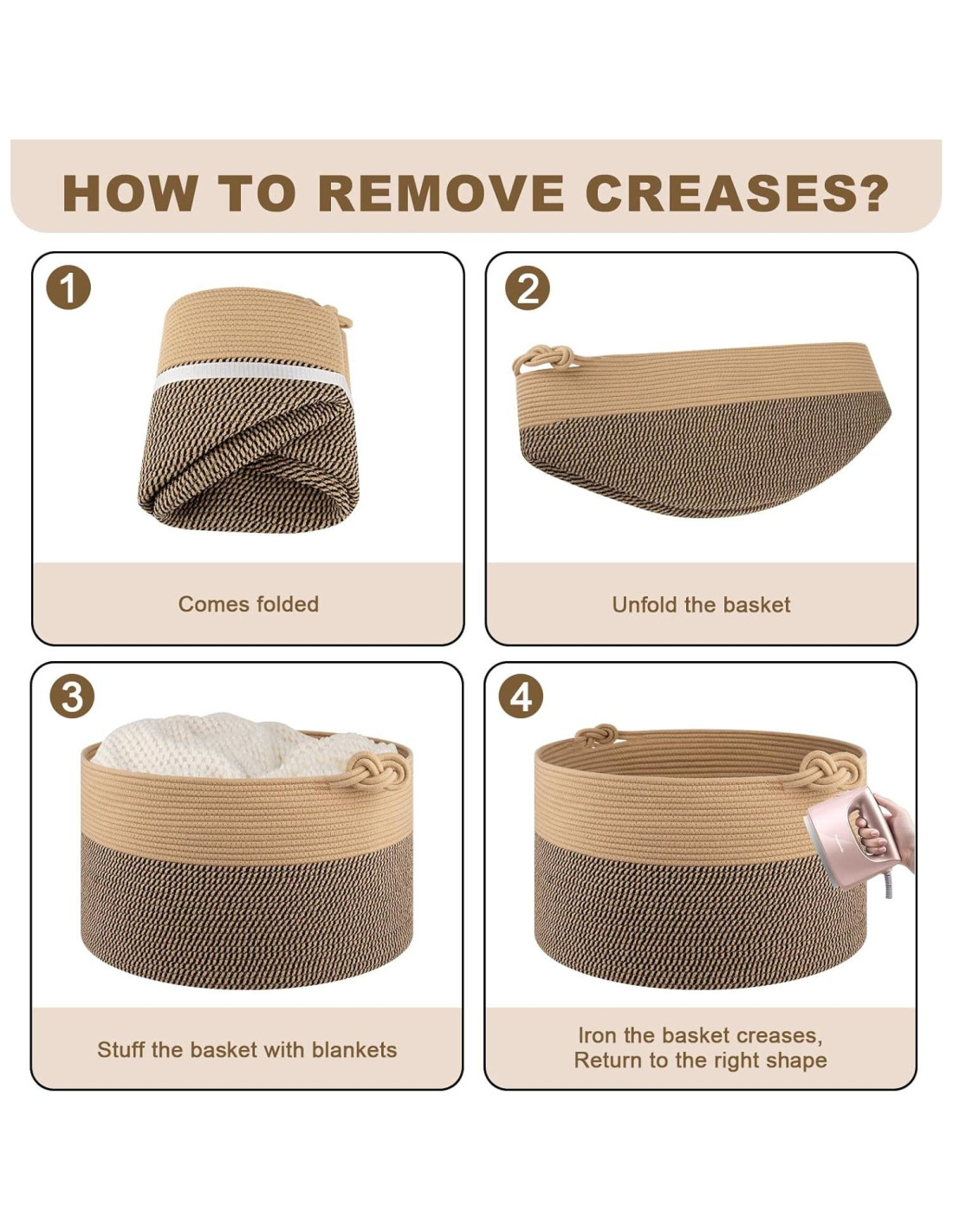 - Nota: La cesta de mantas está doblada para el envío. Recuperará rápidamente su forma elegante al llenarla con toallas o mantas, y plancharla también es una gran idea. Además, puedes doblarla en una forma plana para un fácil almacenamiento cuando no esté en uso