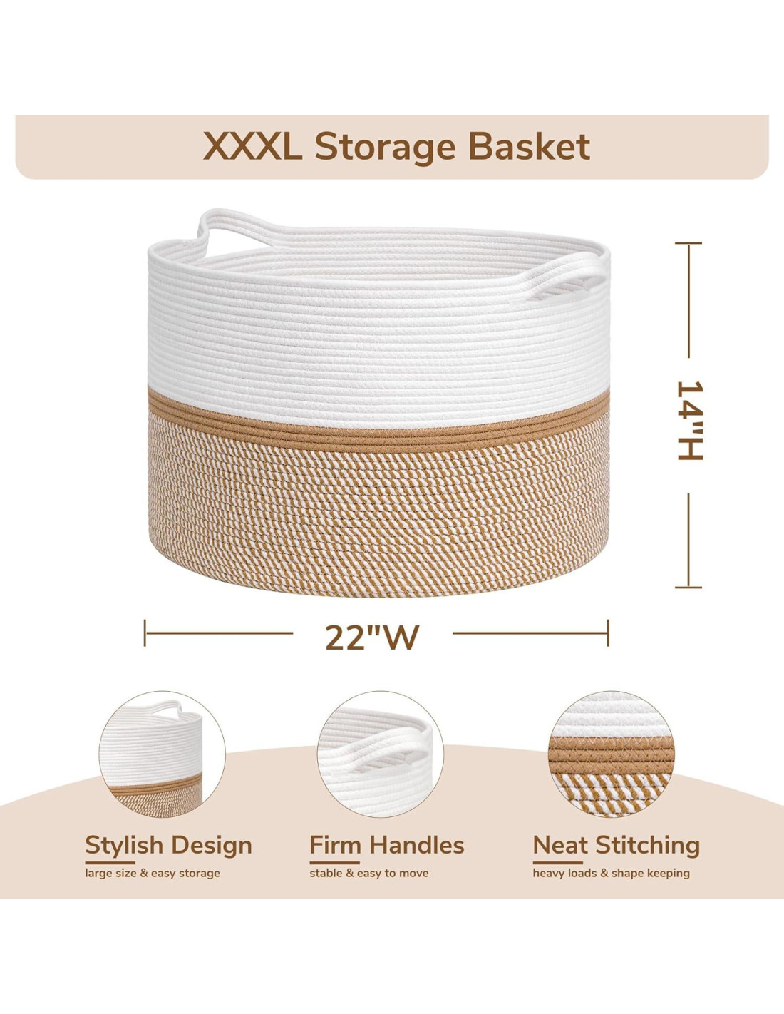 - Duradero: para darte una gran cesta de almacenamiento de lavandería que durará años de uso continuo. La cuerda no se separará, deshilachará ni se descompondrá. Usamos los materiales de la más alta calidad y una construcción firme. Puedes sentir y ver la impresionante diferencia en el momento en que la recibes.