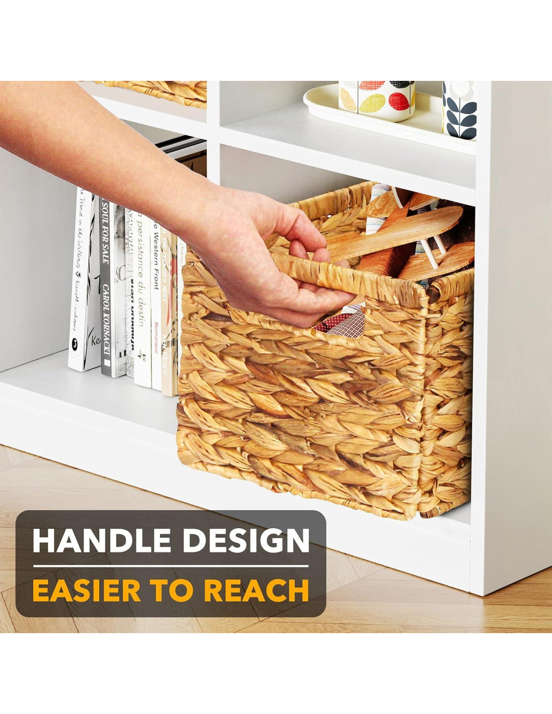 SpaceAid 4 Pack Cesta de Mimbre, Cestas de Almacenamiento para Organizar, Cesta de Ratán Tejido con Asas para Estantes, Organizador de Almacenamiento Cubo Grande de Juncos de Agua, 33x20.8x17.8 cm, Natural