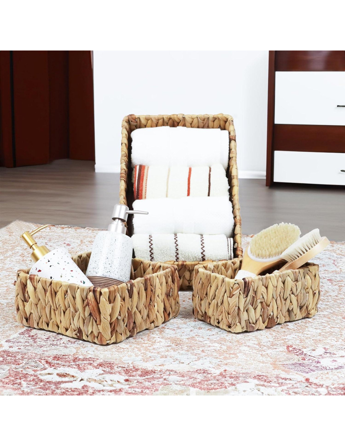 - Cesta de Jacinto de Agua Versátil: Estas cestas decorativas tejidas son ideales para el almacenamiento de toallas, ropa, libros, revistas, papel higiénico, toallas, cosméticos, frutas, bocadillos, regalos, juguetes para bebés, artículos de tocador, juguetes para mascotas y otros artículos del hogar.