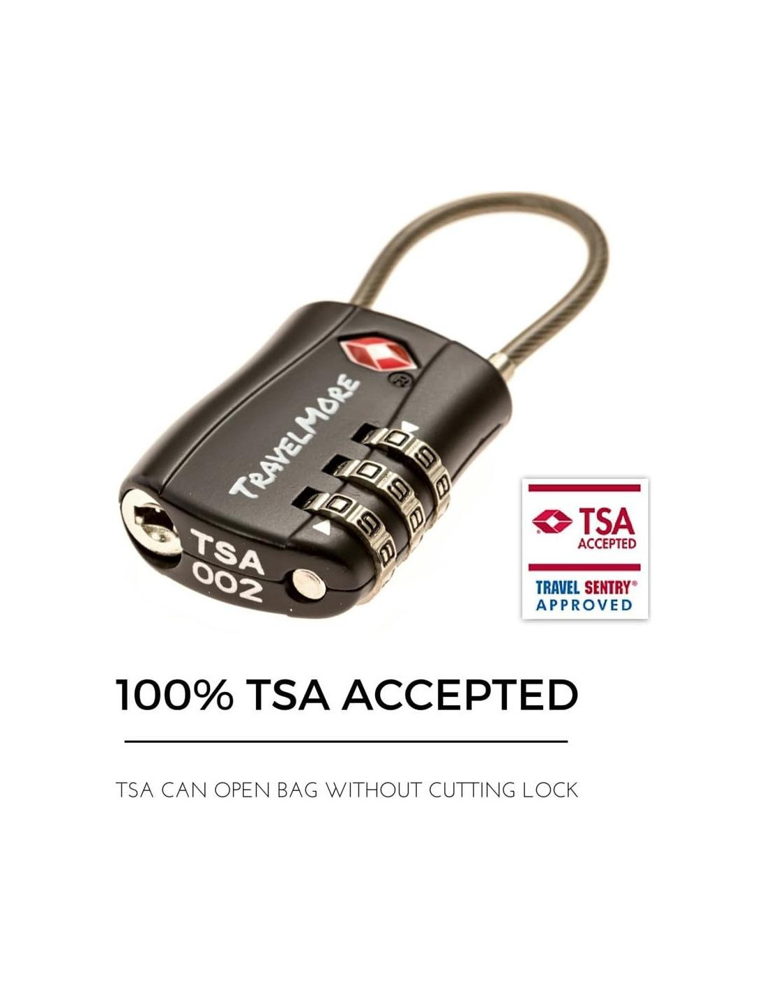 - CANDADO MÁS DURADERO ACEPTADO Y RECONOCIDO POR TSA. Todos los candados de viaje TravelMore están diseñados desde cero para ser los candados de equipaje más fuertes del mercado. Nuestros cuerpos de candado de aleación de alta resistencia, grilletes de acero endurecido y mecanismos internos patentados pueden soportar tanta fuerza que respaldamos nuestro producto con una garantía de por vida del 100%.