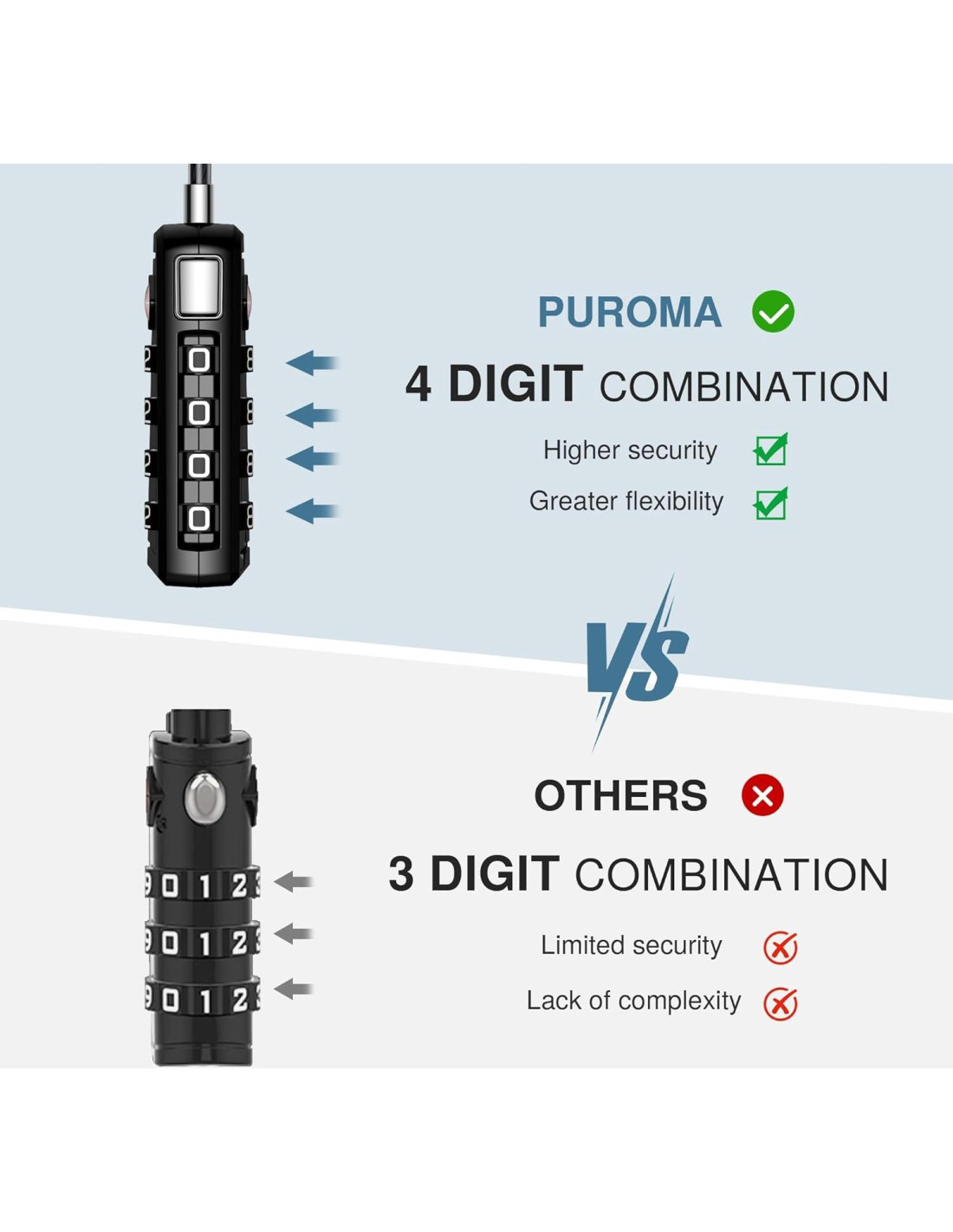 - Seguridad de 10,000 Combinaciones: Los candados de equipaje de 4 dígitos de Puroma proporcionan protección mejorada con 10,000 combinaciones, siendo diez veces más seguros que los candados de 3 dígitos. Con diales negros fáciles de leer con números blancos para una rápida visibilidad, este candado de viaje sin llave te permite simplemente establecer tu propio código para máxima seguridad.