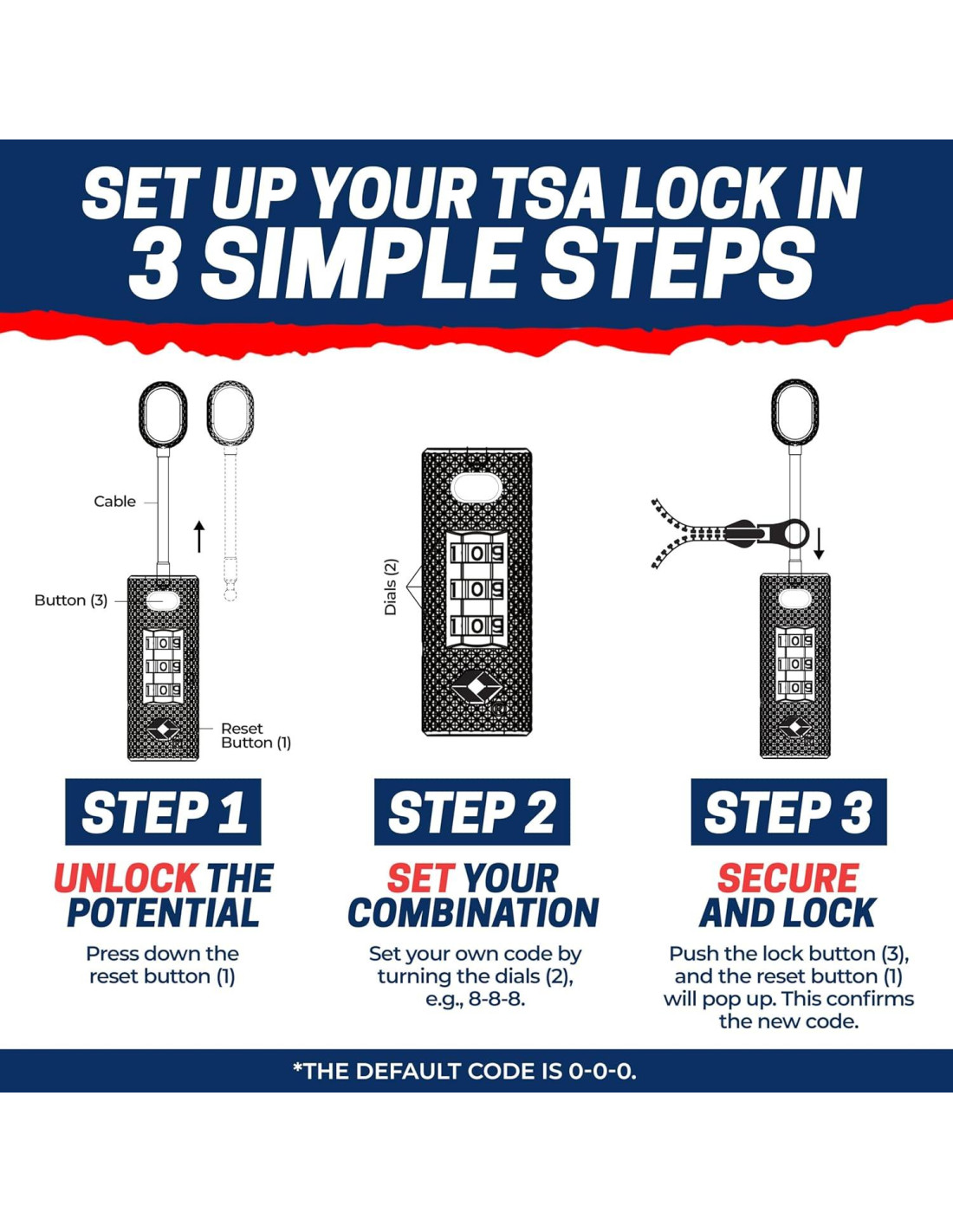 - LA SEGURIDAD DE TRES DÍGITOS: Estos candados de equipaje aprobados por la TSA ofrecen máxima protección con una combinación de 3 dígitos que es fácil de configurar y recordar; un candado de equipaje de la TSA que es difícil de romper para los ladrones y excelente para uso militar, viajes, armas de fuego y equipo esencial