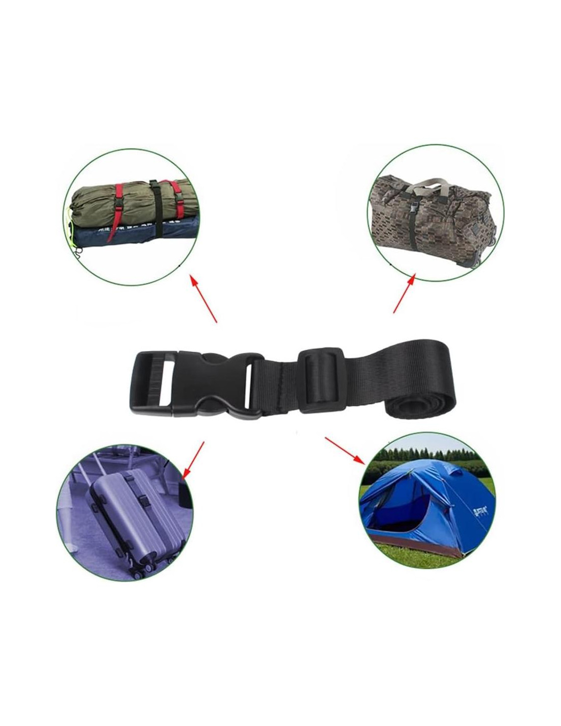 - Amplias Aplicaciones: El cinturón de embalaje de viaje se ajusta fácilmente, se clipa rápidamente y hace un mango conveniente para llevar. Se puede usar para equipaje, maletas, estuches de herramientas, bolsas, mochilas, etc.