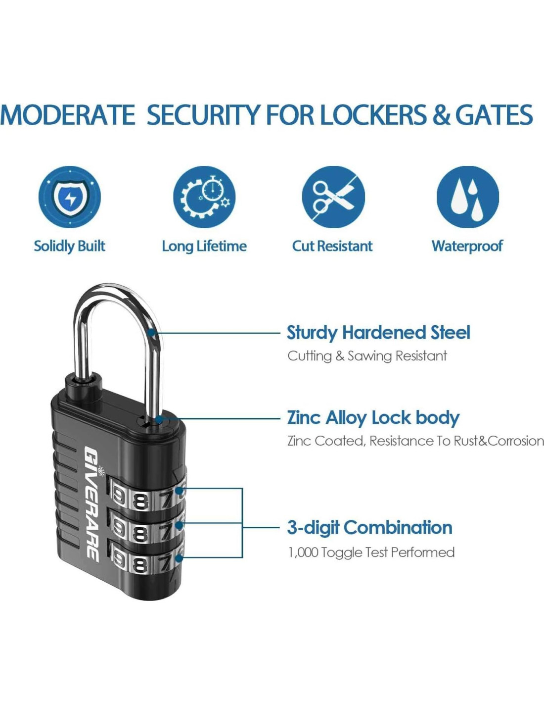 - CANDADO DE 3 DÍGITOS: Este candado de combinación de 3 dígitos permite hasta 1,000 combinaciones, ofrece alta calidad de seguridad para taquillas y puertas y objetos de valor, te brinda un descanso sin preocupaciones al asegurar que todas tus pertenencias estén empacadas de forma segura