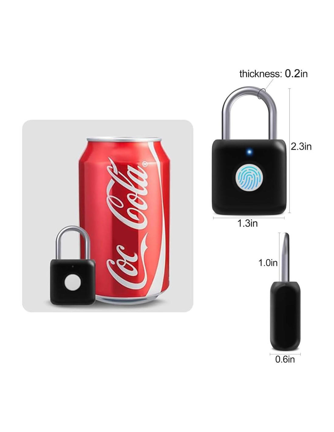- Característica especial: 20 Huellas dactilares, Desbloqueo por App a través de teléfono iOS Watch, Alerta de batería baja, 6 meses de tiempo de espera, Diámetro del grillete 0.4 CM, Cuerpo 3.2x 3.2x1.3 CM, Se adapta a casilleros de gimnasio, caja de herramientas, maletas