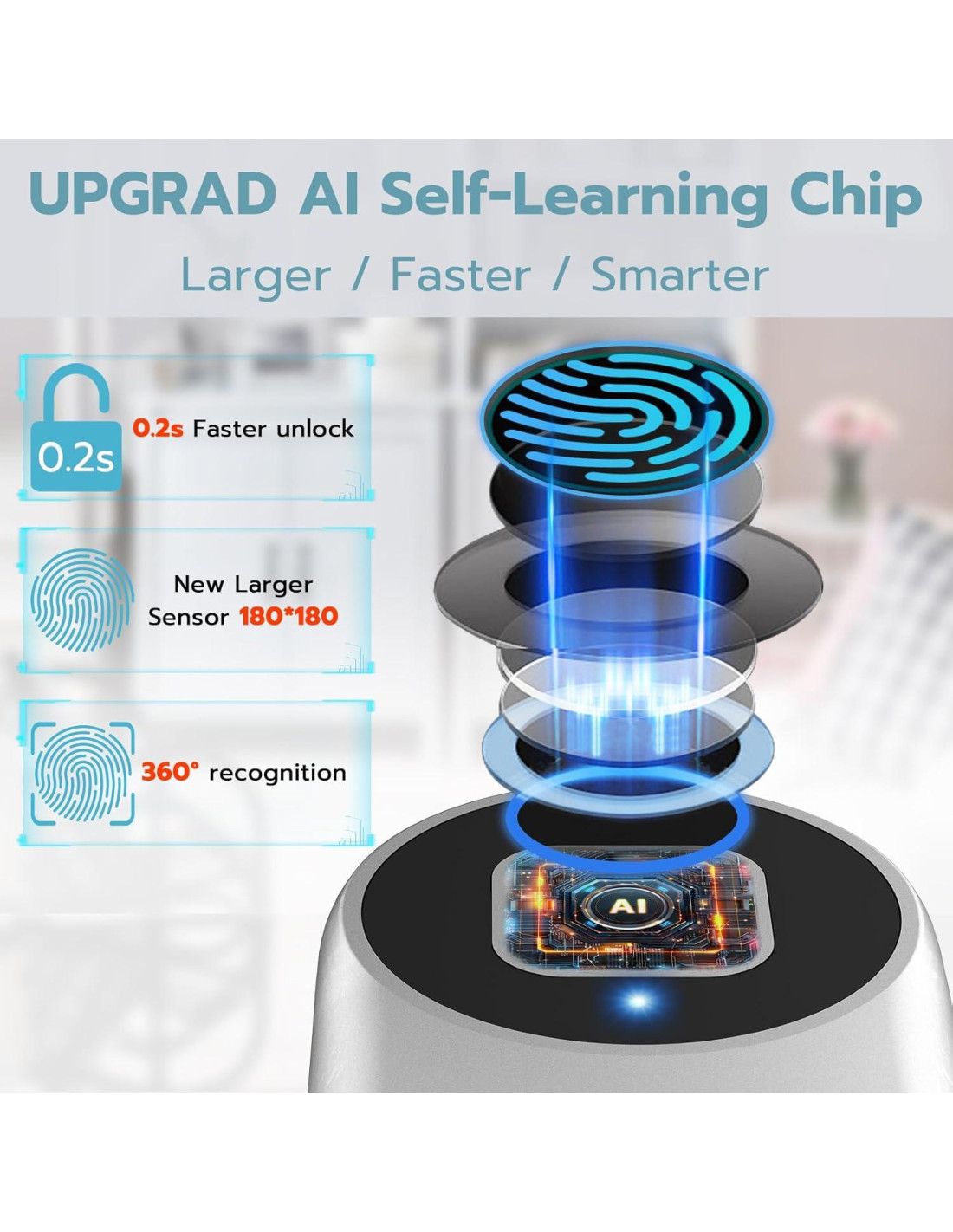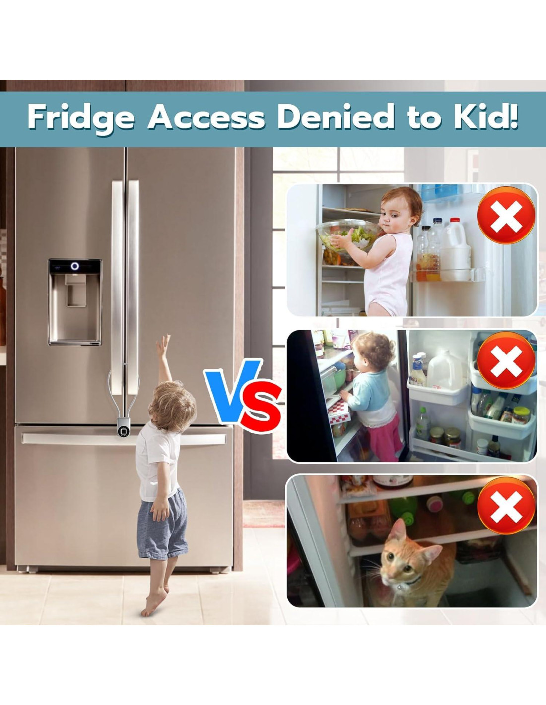 - Candado de Refrigerador Biométrico: Sin taladrar, sin tornillos, sin adhesivos. Sin contraseñas ni llaves engorrosas. Adoptando tecnología biométrica, el candado soporta 20 huellas dactilares, toca tu dedo en la almohadilla para desbloquear en 0.2s rápidamente.