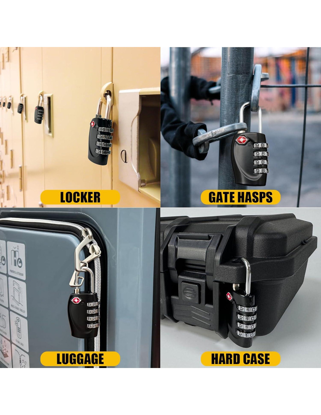 - Ampliamente Usado: Estos pequeños candados de combinación no solo son adecuados para maletas, sino también para mochilas, tiendas de campaña, taquillas de gimnasio, taquillas escolares, cajones, cajas de herramientas y gabinetes. El diámetro del grillete permite que estos candados de combinación para estuches de armas se ajusten a todas las cremalleras de tamaño estándar. Ya sea que estés viajando o necesites un candado confiable para uso diario, nuestros candados para estuches de armas aprobados por TSA son la elección perfecta.