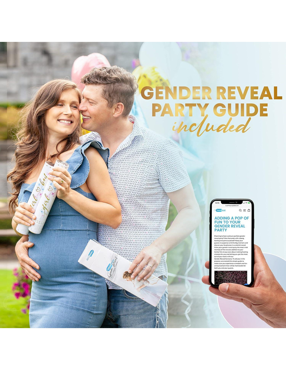 - Agrega un toque de emoción - Crea una atmósfera emocionante y mantén a todos al borde hasta que las bombas de humo rosa y los cañones de polvo estallen, revelando el género de tu bebé de manera espectacular. Celebra el gran momento con un estallido inolvidable en tu fiesta de revelación de género.
