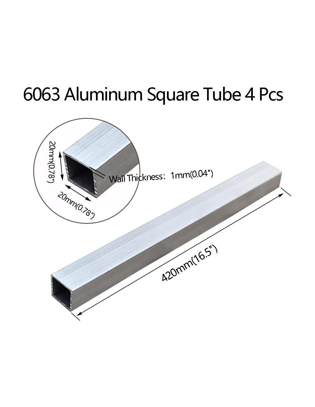 - Tamaño del tubo: 20mm (0.78 pulgadas) x 20mm (0.78 pulgadas) x 420mm (16.5 pulgadas), grosor de pared de 1mm (0.04 pulgadas), 4 piezas