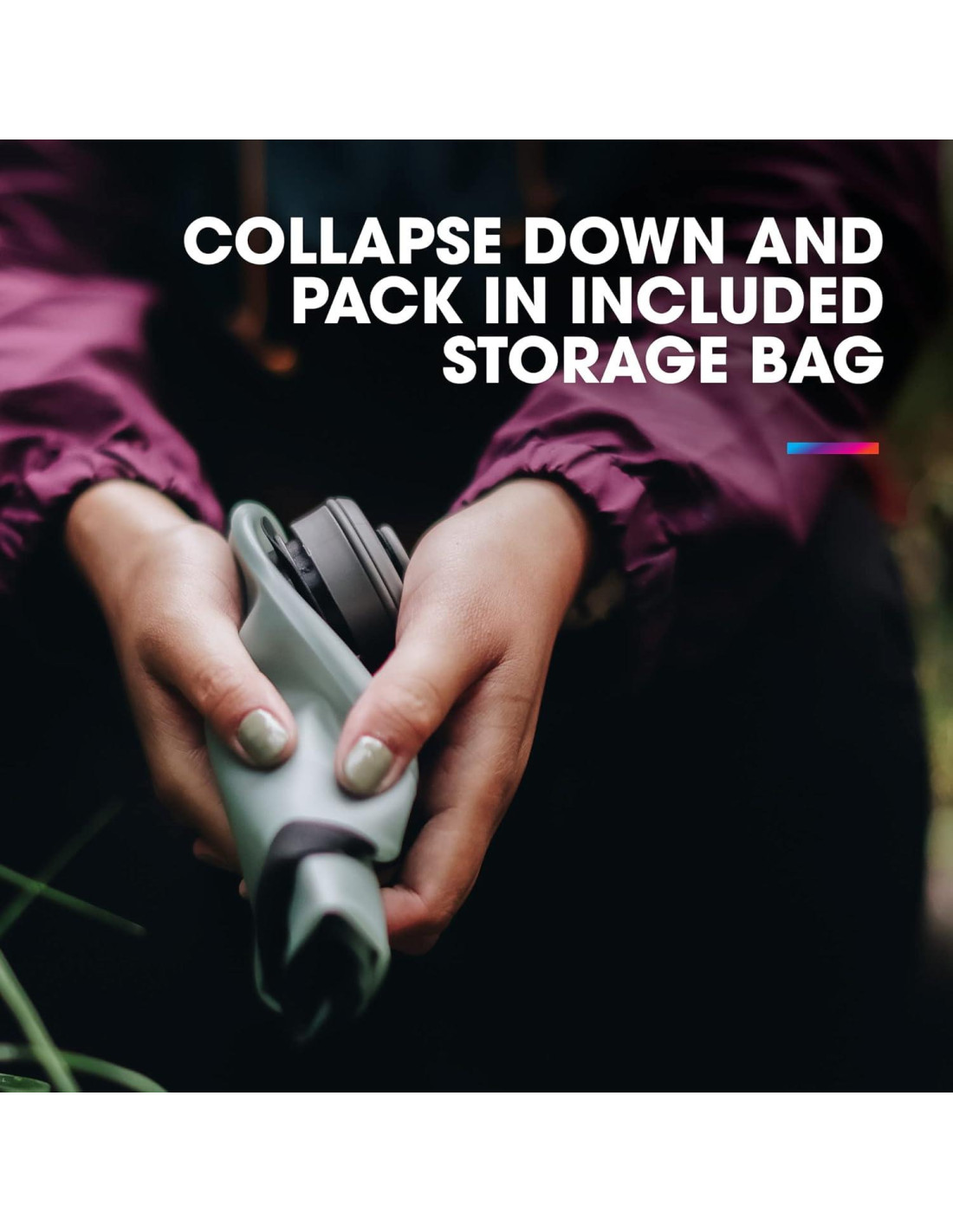 - PORTÁTIL Y PLEGABLE: Dobla o aplasta los contenedores de almacenamiento de agua cuando estén vacíos y guárdalos en la bolsa de almacenamiento incluida. El diseño flexible lo hace tan ligero y compacto que olvidarás que está en tu mochila.