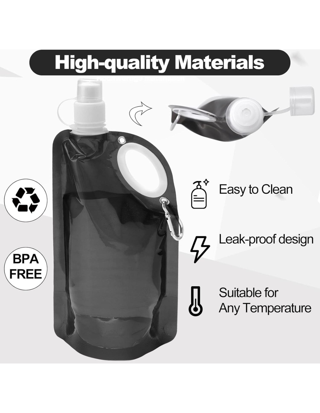 - Botellas de Agua Plegables de 720ML: El set incluye 8 botellas de agua plegables en 8 colores diferentes (negro, azul, rojo, verde, verde claro, naranja, púrpura). Cada botella de agua tiene una capacidad de 720ml y un peso de 17 gramos, que puede almacenar agua, jugo, leche y otras bebidas.