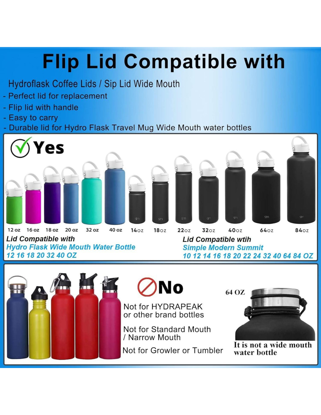 - {Fácil de Usar} Tapa compatible con botella de agua de boca ancha Hydro Flask 12 16 18 20 32 40 oz. Tapas de boca ancha con tapa abatible, se ajusta a algunas botellas de agua de marca, tapa de reemplazo también se ajusta a Nalgene y SimpleModern Summit y más botellas de agua deportivas, fácil de llevar hydroflasks con asa flexible de la tapa.