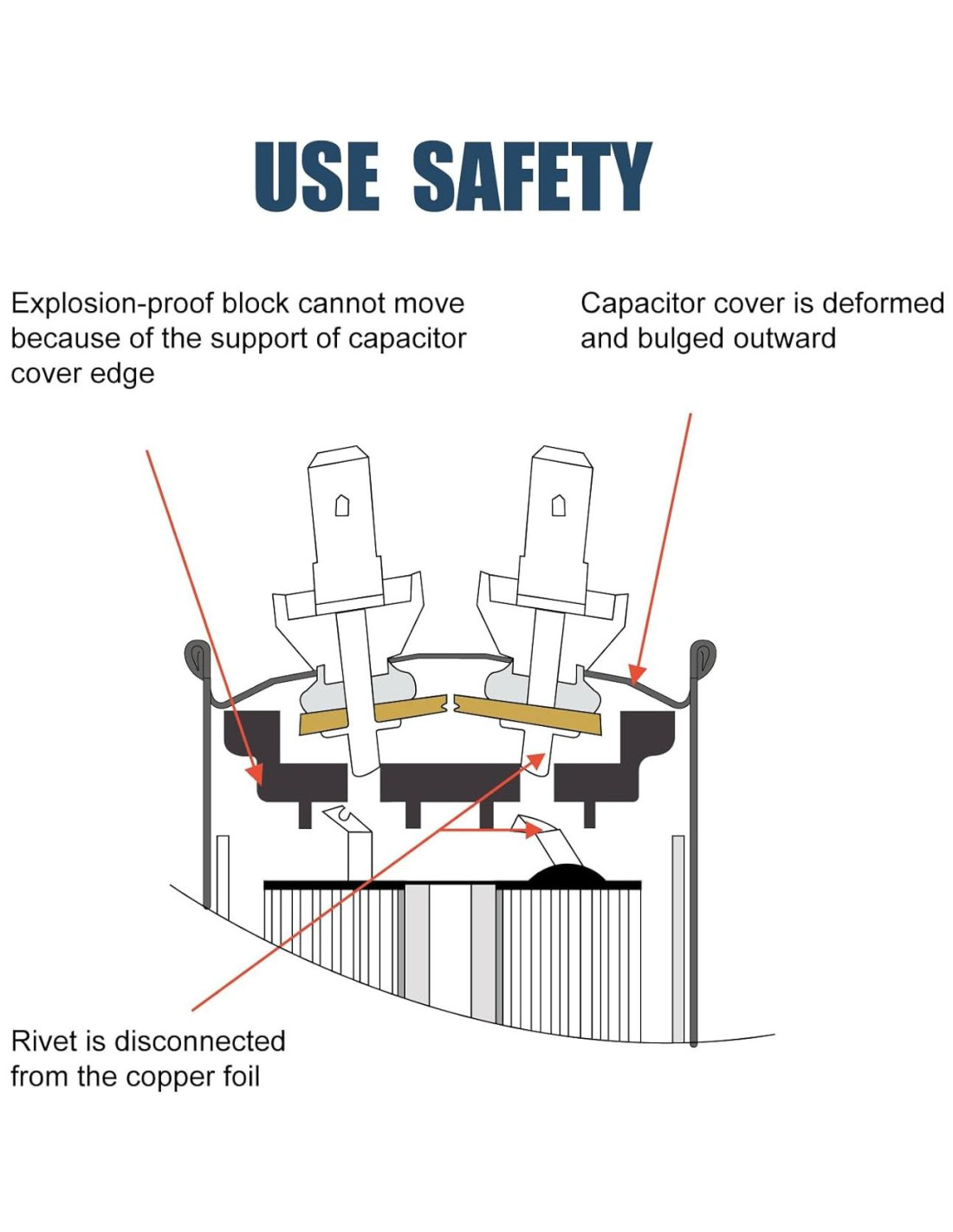 - Construido según los estándares más RIGUROSOS de EE. UU. para capacitores de motor de AC. Diseñado con los más altos estándares - cumple con las especificaciones EIA-456-A e IEC 60252-1:2001.