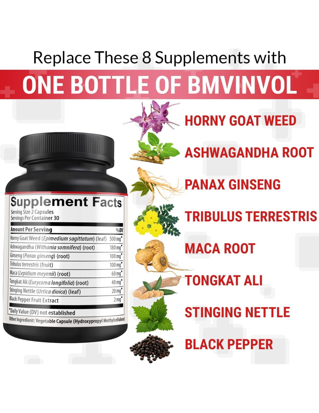 - Ingredientes: Hierba de Cabra Caliente, Ginseng Panax, Tribulus, Ashwagandha, Maca, Tongkat Ali, Ortiga, Pimienta Negra.