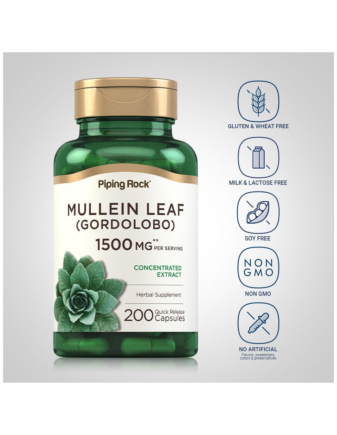 La hoja de Mullein, o Verbascum thapsus, es una especie de hierbas nativa de Europa, África del Norte y Asia en regiones templadas. Tiene una larga historia de uso en prácticas alrededor del mundo y se utiliza comúnmente como té de hierbas. La hoja de Mullein contiene mucílago, una sustancia similar a un gel con saponinas, taninos y otros beneficios que ocurren de forma natural. Mejora tu rutina con el Suplemento de Hoja de Mullein de Piping Rock. Este increíble suplemento ofrece un equivalente de 1,500 mg de Hoja de Mullein por porción en cápsulas de liberación rápida. Este vitamina viene en muchas formas, como té, gotas, líquidos, aceites, tinturas, cápsulas, gomitas y polvo. Está libre de conservantes, la mejor manera de llevar antioxidantes que ocurren de forma natural a tu rutina. Piping Rock ofrece con orgullo una selección en constante crecimiento de productos diseñados para ayudarte a alcanzar tus objetivos únicos de bienestar. Verificamos todos los productos con agencias registradas de terceros asegurando pureza, potencia, seguridad e innovación en todo lo que hacemos. Estamos comprometidos a apoyarte en tu camino hacia una vida saludable, y te agradecemos por elegirnos.