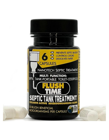 es un tratamiento séptico basado en Nano-Tech que previene tuberías obstruidas, sistemas sépticos respaldados y los malos olores resultantes. Los productos de FLUSHTIME están diseñados para mantener su sistema séptico saludable, evitando así reparaciones costosas. Nuestros productos son excelentes para uso residencial, comercial e industrial. Hogares, RVs, Caravanas, Barcos, Yates, inodoros portátiles; todos se benefician de FLUSHTIME. ¡FLUSHE con confianza! FLUSHTIME comenzó en el laboratorio de un renombrado microbiólogo que, mientras estudiaba los hábitos de alimentación y reproducción de microorganismos bajo un microscopio, descubrió cepas particulares que comían más, digerían más rápido y se reproducían más rápido. Este grupo selecto de microorganismos se convirtió en las colonias fundadoras que están encapsuladas en FLUSHTIME y buscan un hogar feliz en su Tanque Séptico. 100% Natural = Sin daño a su Sistema Séptico Alta concentración de microorganismos = efectivo y eficiente 50 mil millones Los olores sépticos son algunos de los olores más nauseabundos y tóxicos de la tierra. Generalmente son causados por materia orgánica obstruida y descomponiéndose en su línea de alcantarillado principal. La potente fórmula digerirá la materia orgánica asegurando que los olores sépticos se mantengan bajo control. Deje de jugar con tratamientos de tanques sépticos obsoletos. Las cápsulas, paquetes, tabletas, líquidos y polvos son cosa del pasado... Las Cápsulas de Nano-Tech con portadores de alta tecnología entregan una dosis ultra-concentrada de microorganismos beneficiosos para el séptico que digieren grasas, aceites, materia orgánica y papel higiénico, manteniendo así su sistema séptico saludable y previniendo el respaldo séptico. La formulación es no corrosiva y libre de formaldehído, por lo que sus tuberías estarán seguras; el uso mensual mantiene su sistema séptico funcionando de manera óptima, evitando así reparaciones costosas. Está Hecho en EE. UU.; somos completamente naturales, así que puede estar seguro de que manejamos los negocios mientras mantenemos nuestro planeta seguro. Creamos Compact by Design para identificar productos que, aunque pueden no parecer muy diferentes, tienen un diseño más eficiente. Con la eliminación de aire y agua en exceso, los productos requieren menos empaque y se vuelven más eficientes para enviar. A gran escala, estas pequeñas diferencias en el tamaño y peso del producto conducen a reducciones significativas en las emisiones de carbono.