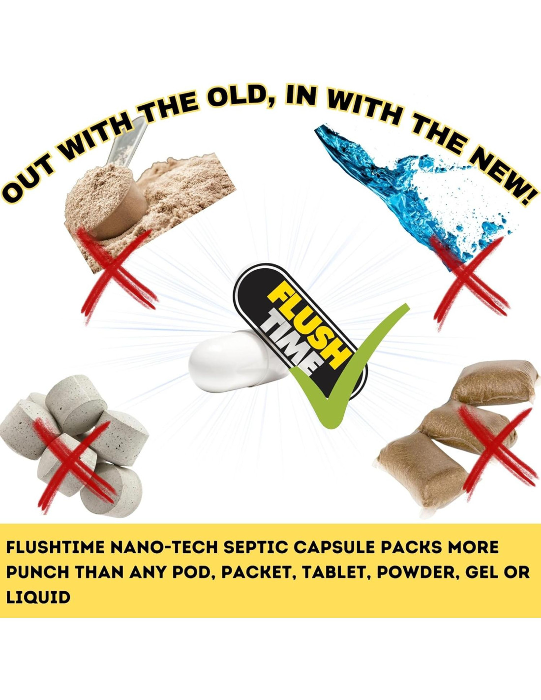- Fácil de Usar, Más Efectivo que Líquidos o Tabletas: Simplemente deje caer una cápsula en el inodoro y flushee. Se disuelve en el tanque séptico para una máxima efectividad-sin desorden, sin herramientas, sin conjeturas.