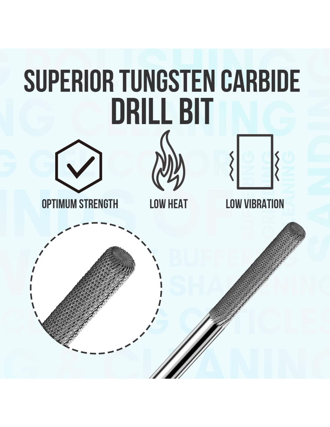 - Broca de Aguja de Alta Calidad: Hecha de carburo, esta broca de uñas eléctrica ofrece alta resistencia y durabilidad con mínima vibración, asegurando un uso a largo plazo y ahorro de costos. Alta resistencia, buen rendimiento de corte, siempre que se mantengan adecuadamente, se pueden usar durante mucho tiempo en superficies de gel y uñas acrílicas.