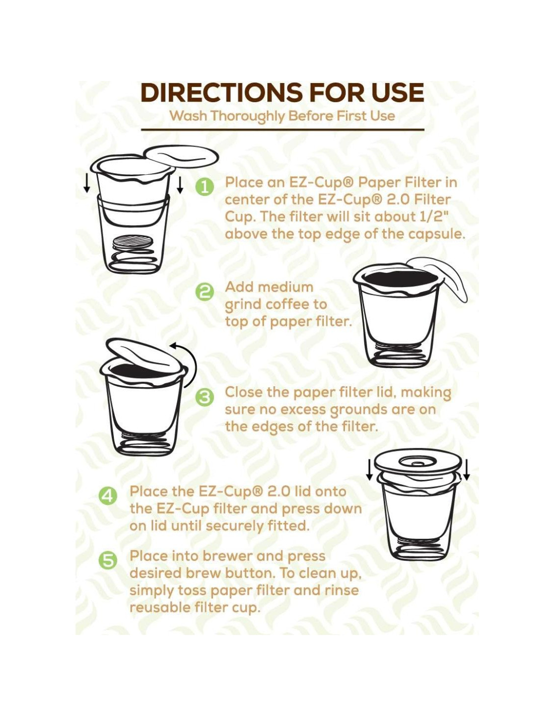 - Sin Desorden: Filtros de Papel EZ-Cup patentados con Tapa significa que no hay posos de café que manejar. Limpieza Fácil: La cápsula EZ-Cup rara vez necesita limpieza, gracias a nuestros filtros de papel.