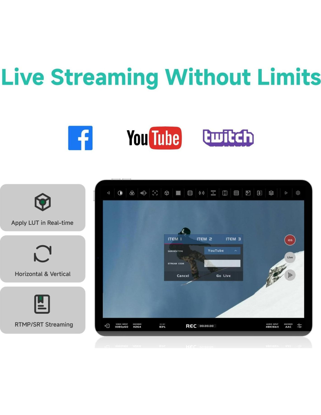 - Transmisión en Vivo Fácil: Accsoon SeeMo Pro es un adaptador de monitoreo, grabación y transmisión para dispositivos iOS a través de la aplicación Accsoon SEE. Transmite en vivo usando 4G/5G o Wi-Fi. La aplicación te ayuda a alcanzar audiencias en cualquier lugar usando RTMP a sitios populares como Facebook, Twitch, YouTube.
