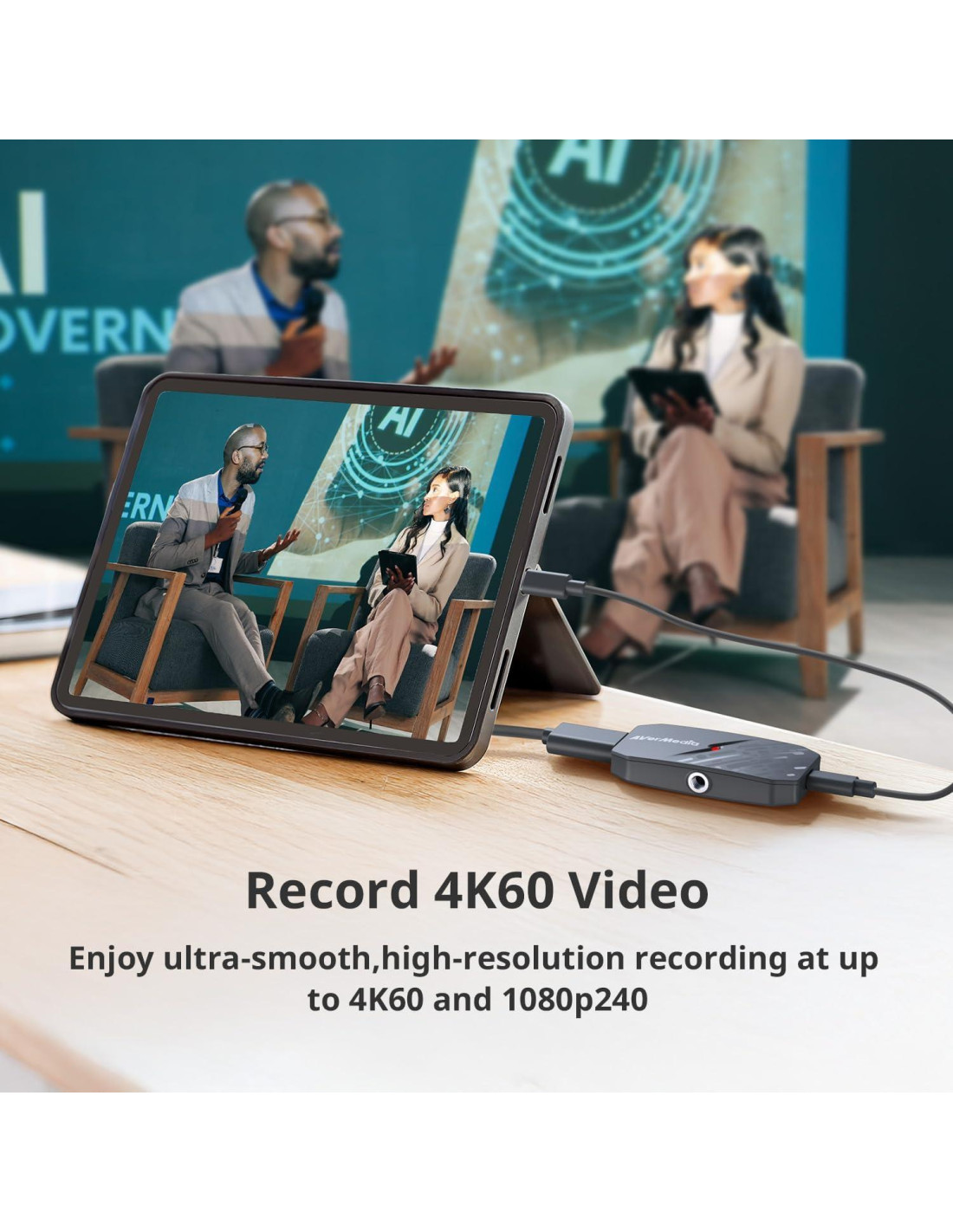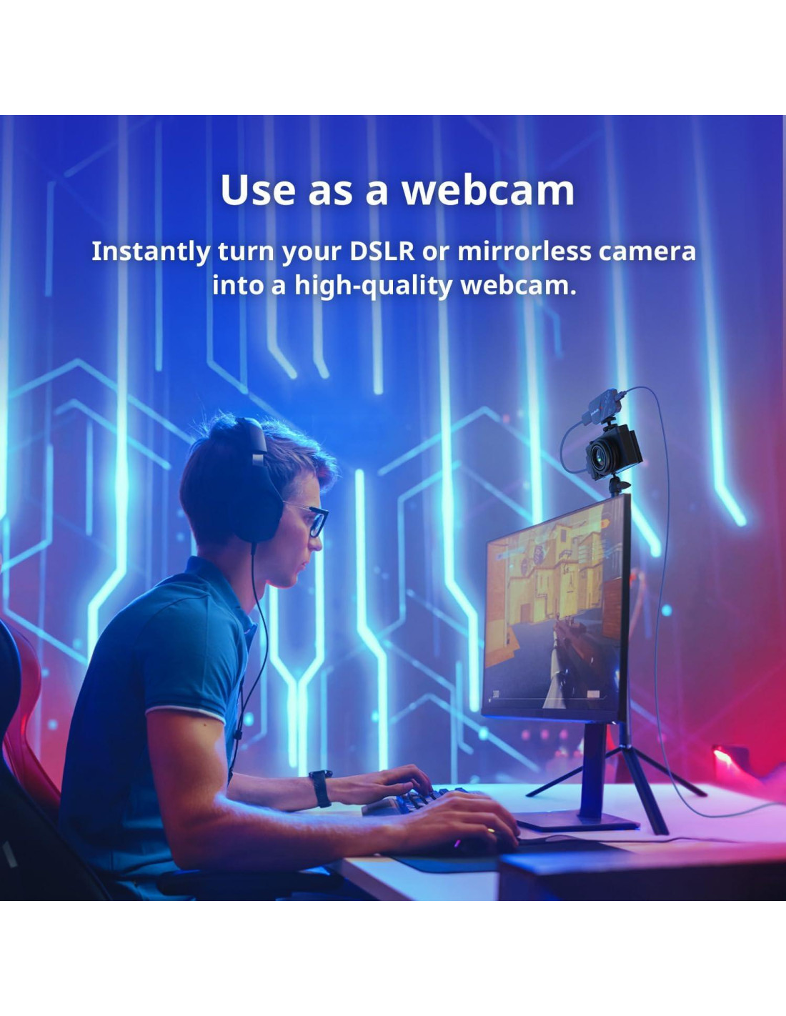 - Dispositivo de Captura de Video Plug & Play: ¡No se necesitan controladores! Convierte tu DSLR o cámara sin espejo en una webcam con una simple configuración de plug & play. Conecta fácilmente tu DSLR, videocámara o GoPro a través de HDMI y comienza a transmitir en Twitch, OBS y Zoom, sin necesidad de energía extra, lo que lo hace ideal para transmisiones en vivo y videoconferencias.
