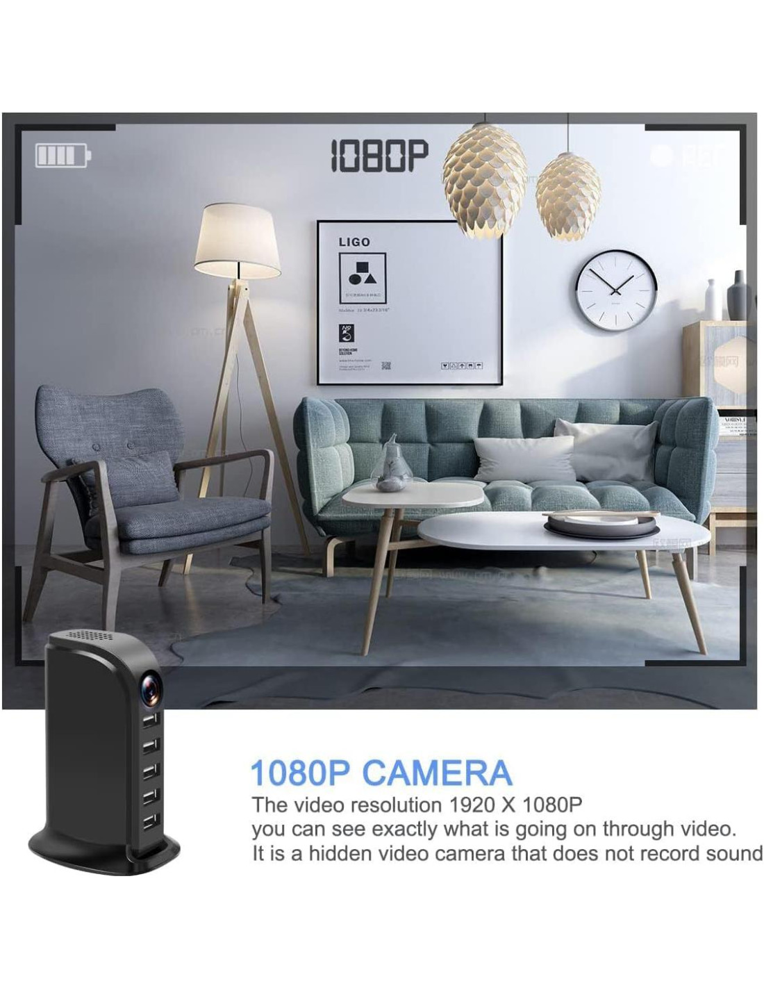 - Grabadora de Video con 5 Puertos de Carga Esta nueva cámara de seguridad USB con 5 puertos también es un potente hub de carga USB que puede cargar hasta 5 dispositivos simultáneamente y funcionar 24/7 sin preocuparse por la duración de la batería. No soporta carga rápida.