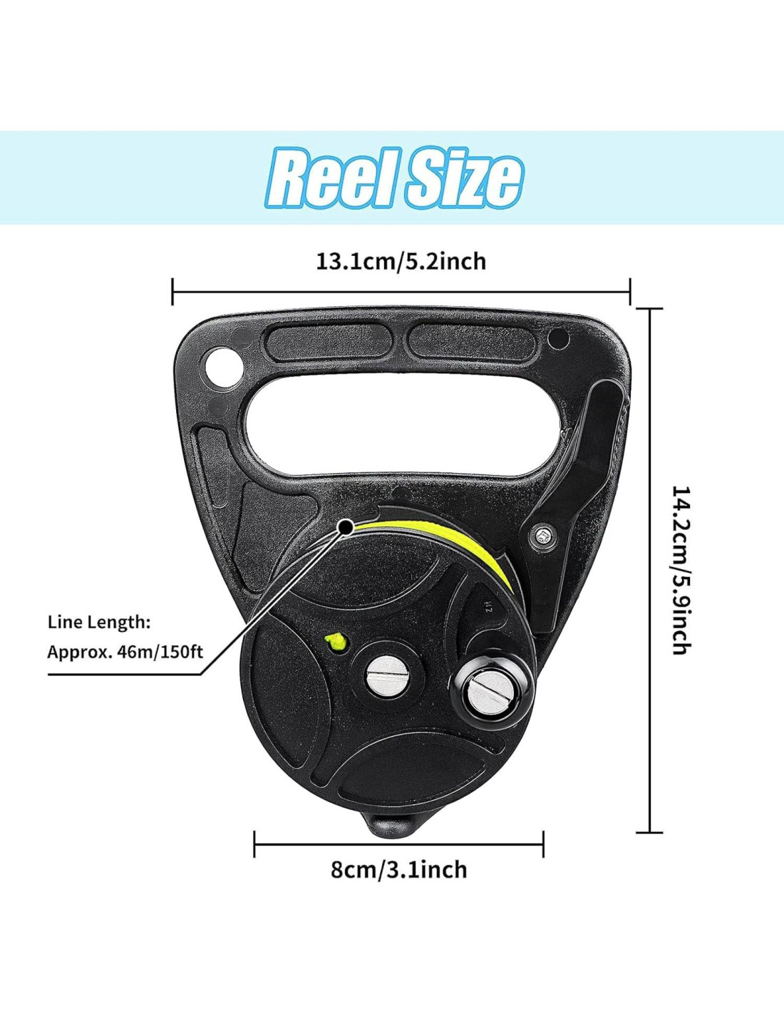 - MULTIUSO: este carrete de buceo se utiliza ampliamente en buceo en cuevas, buceo en naufragios, buceo a la deriva, buceo y es un accesorio versátil para kayak, canotaje, SMBs, flotadores de buceo, pesca con arpón, esquí o como línea guía.