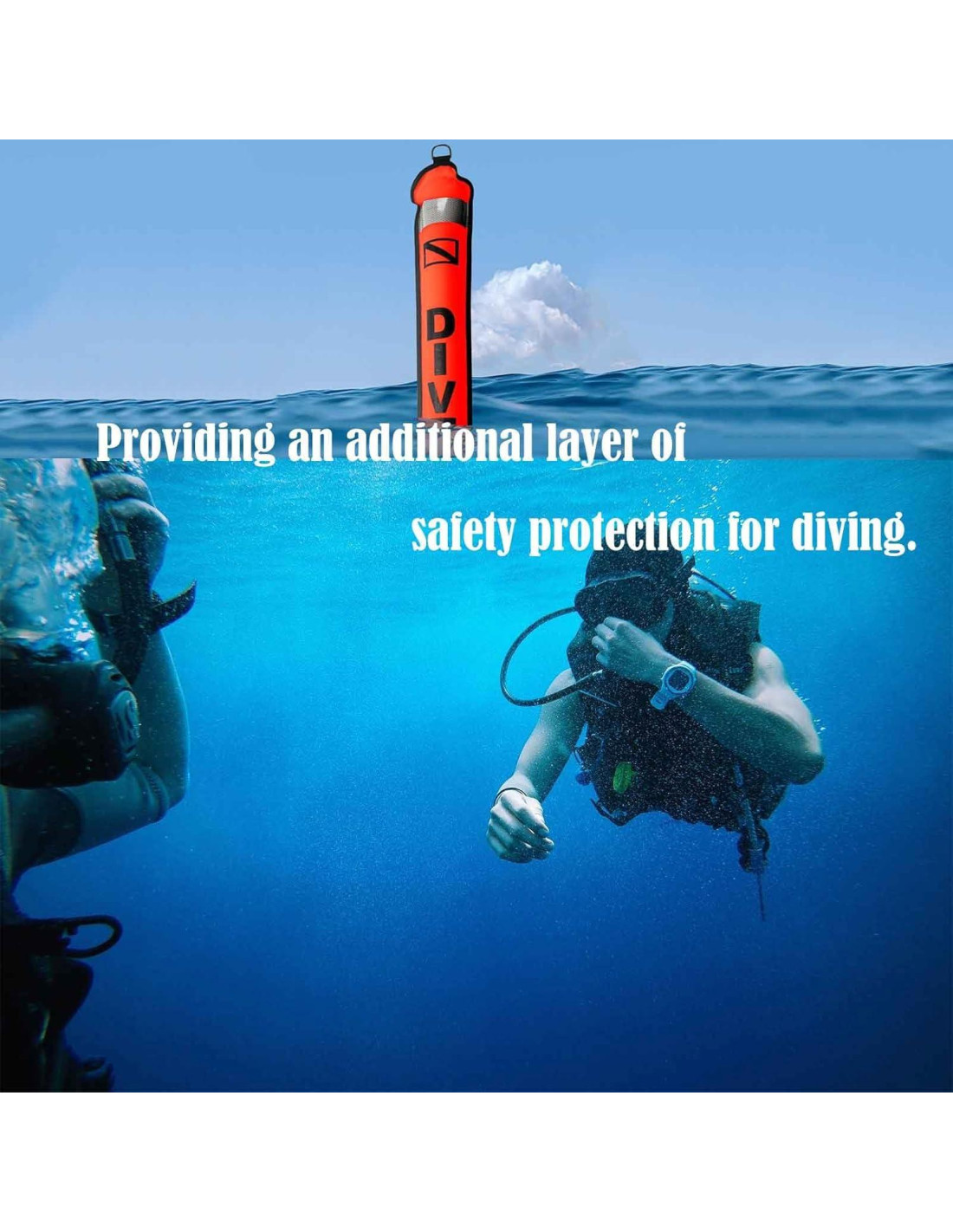 - [AHORRO DE ESPACIO]: Nuestra salchicha de seguridad se puede enrollar y llevar fácilmente. El diseño de doble fijación permite empacarlo de manera fácil y rápida después de bucear. Lo que también ahorra espacio.