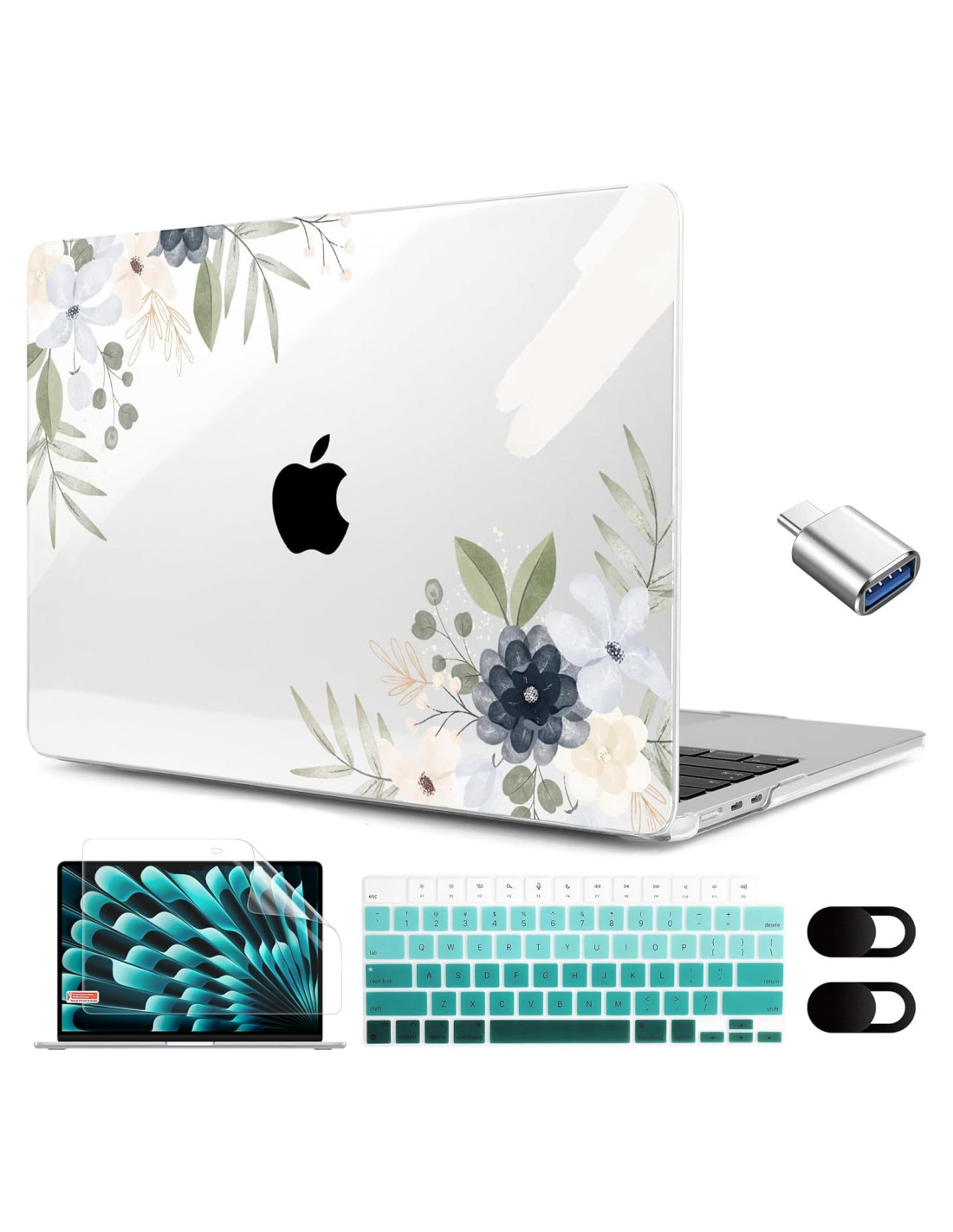 - Paquete Incluido: Incluye 1 funda para MacBook Air 15.3, 1 cubierta de teclado a juego, 1 adaptador OTG plateado, 1 protector de pantalla y 2 cubiertas de cámara web