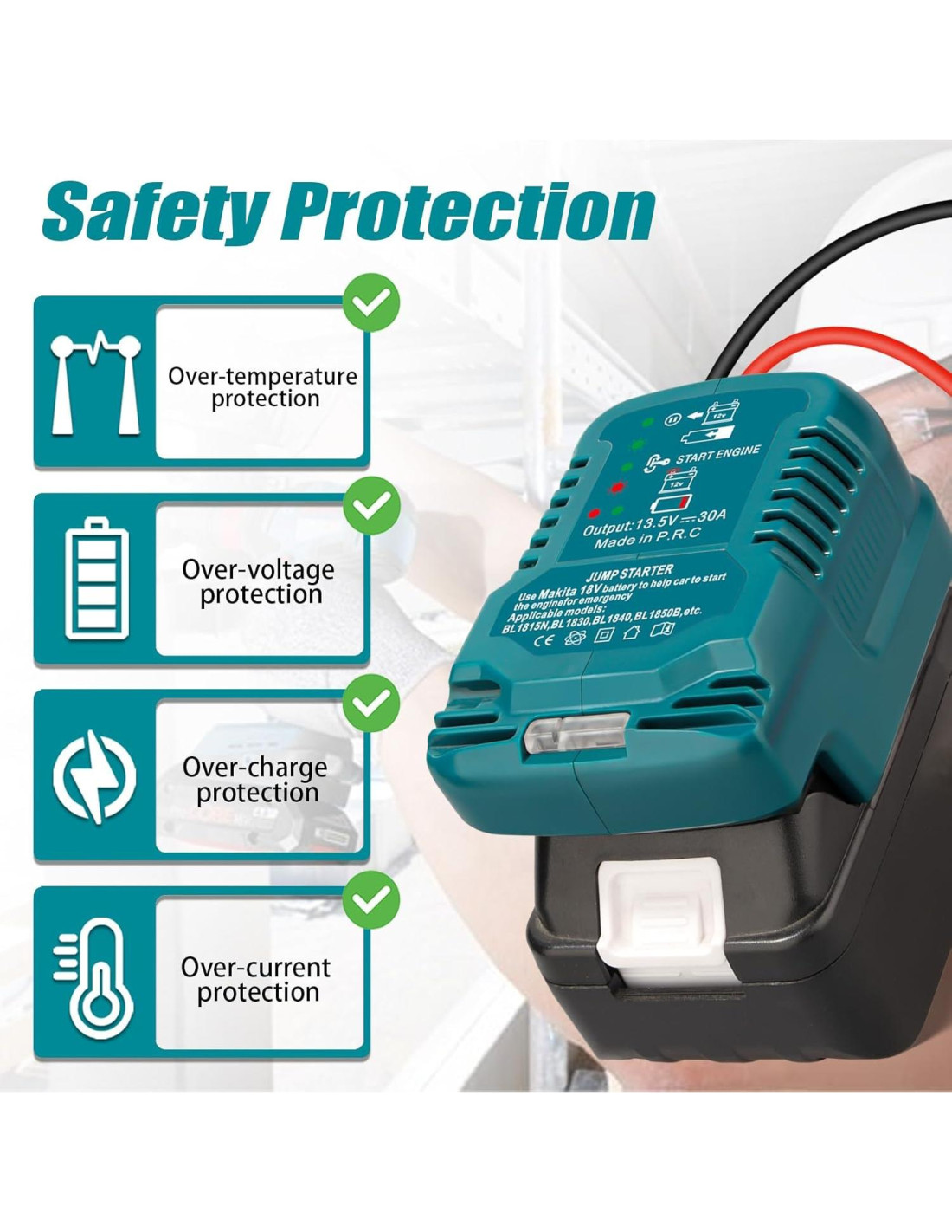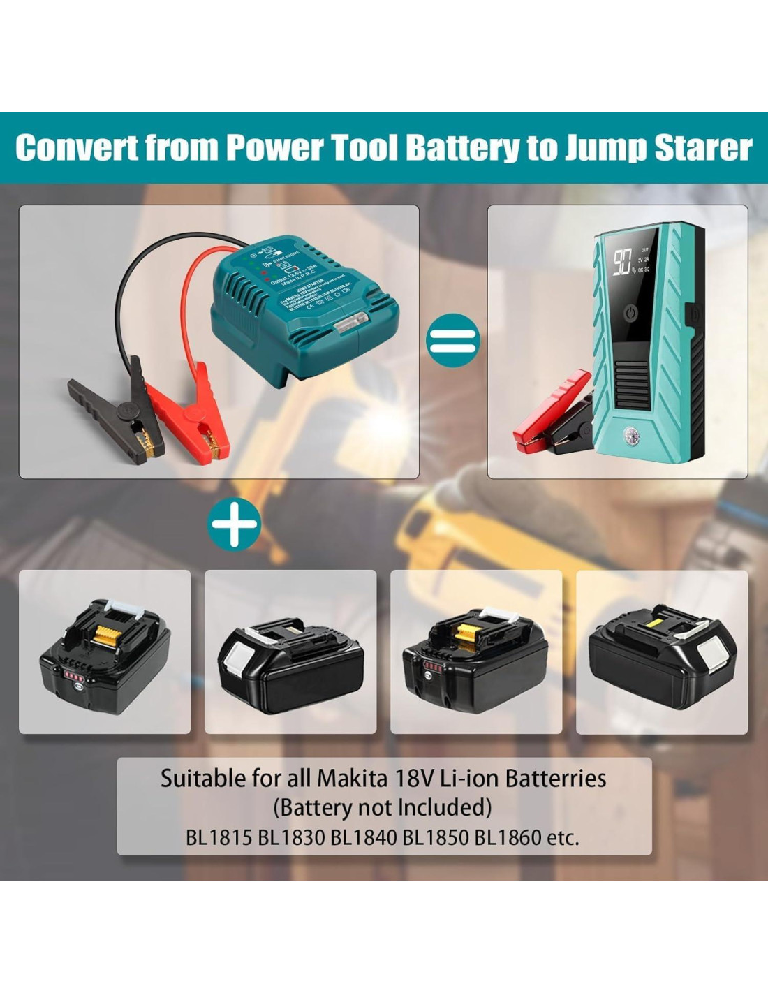 - Compatible con Baterías Makita de 18V: El adaptador de arrancador de coche portátil ayuda a arrancar, compatible con las baterías Makita de 18V series BL1830 BL1840 BL1850 BL1860 (Nota: Batería no incluida) Aumentador de Batería de Coche de 12V. Motor de hasta 3.5 Litros. Para arrancador de Makita, Arrancador de Coche