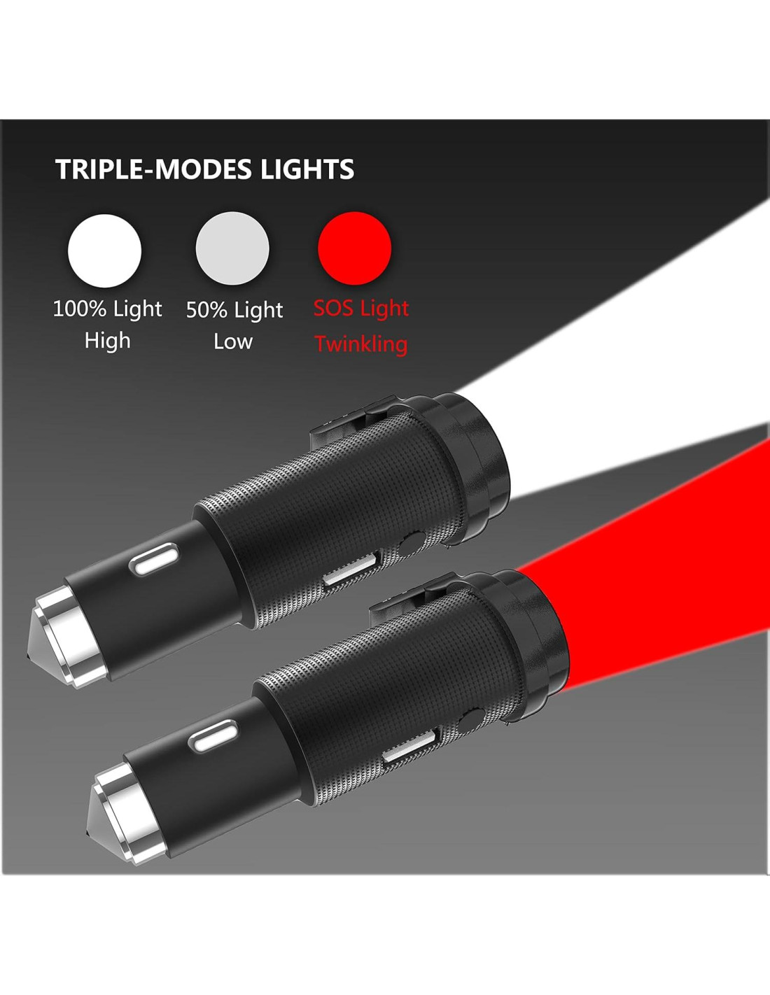 - Salvavidas y Seguridad en el Automóvil: la herramienta de seguridad para cargador de automóvil tiene 6 funciones, cargador de teléfono para automóvil, rompedor de ventanas, cortador de cinturones de seguridad, luz de emergencia roja, linterna de automóvil. Primero, puede cortar el cinturón de seguridad del automóvil, romper el cristal de la ventana del automóvil para rescatarse si estamos involucrados en accidentes automovilísticos. Segundo, puede revisar el motor del neumático del automóvil con la linterna de alta intensidad, pedir ayuda con la linterna roja, esperar rescate con la linterna de bajo consumo. Tercero, conéctelo al puerto de su automóvil para cargar su teléfono móvil rápidamente.