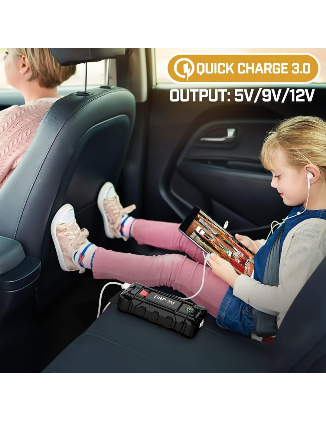 - Estación de Poder Mini: El masivo refuerzo de batería de 15800mAh tiene 2 puertos USB QC3.0 compatibles con casi todos los dispositivos para una carga óptima y rápida + salida DC de 12V/10A y encendedor de cigarrillos DC para alimentar dispositivos automáticos + recarga rápida Tipo C en 5 horas.