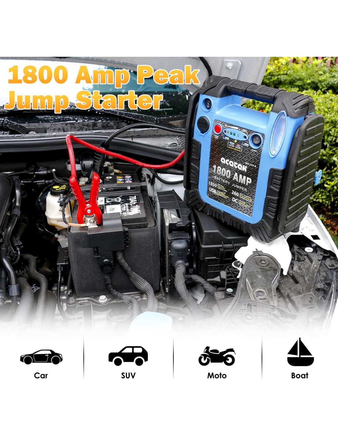 - ARRANCADOR DE BATERÍA PODEROSO: La corriente máxima del arrancador de batería de coche es de 1800 A. Está diseñado para vehículos de 12 V como coches, SUV, coches de negocios, furgonetas, camionetas y motocicletas (hasta 6 L gasolina o 6 L motor diésel). Este paquete de energía de batería proporciona hasta 30 arranques en una sola carga, puede arrancar de manera segura las baterías muertas en unos pocos segundos y mantener una carga por más de 6 meses