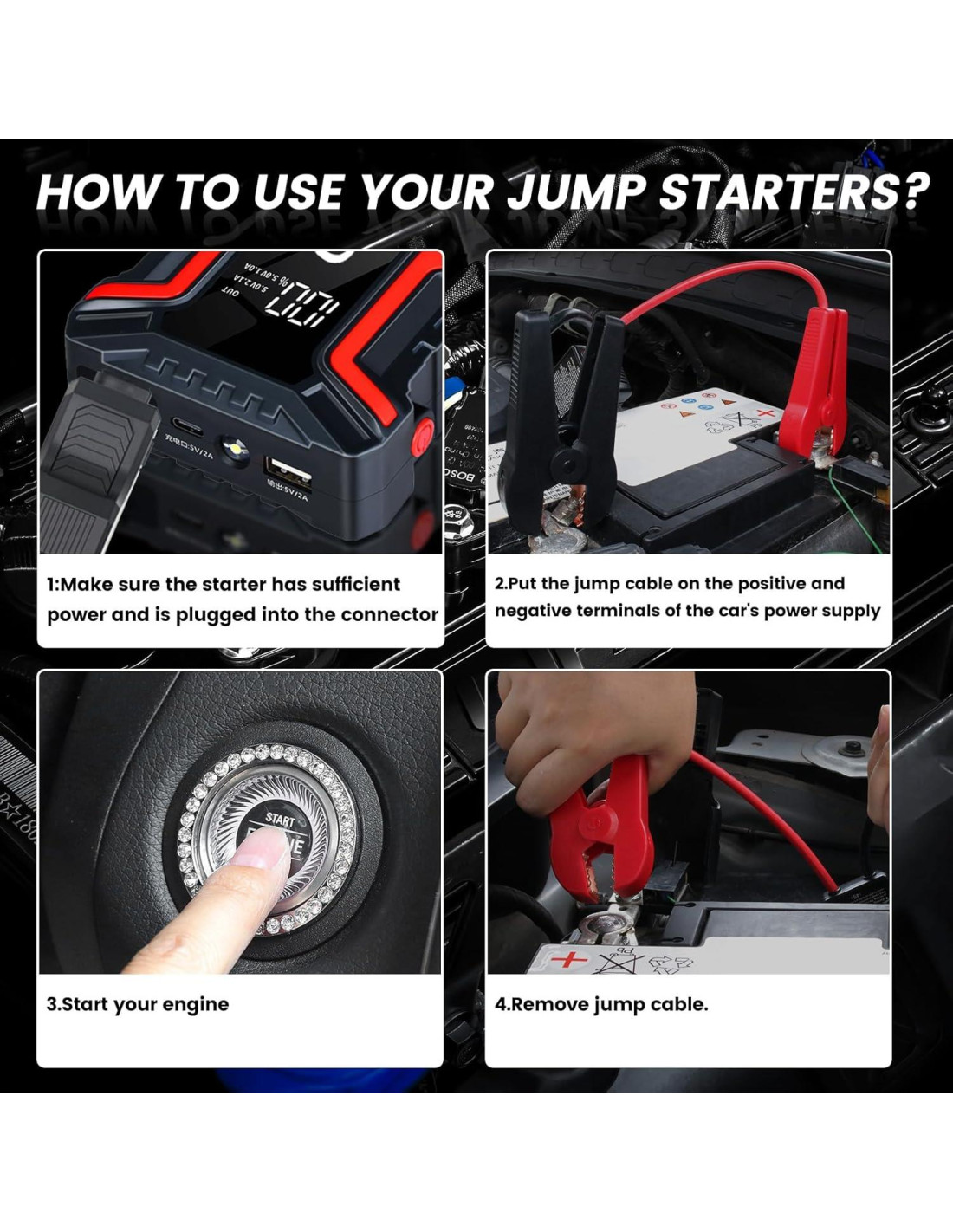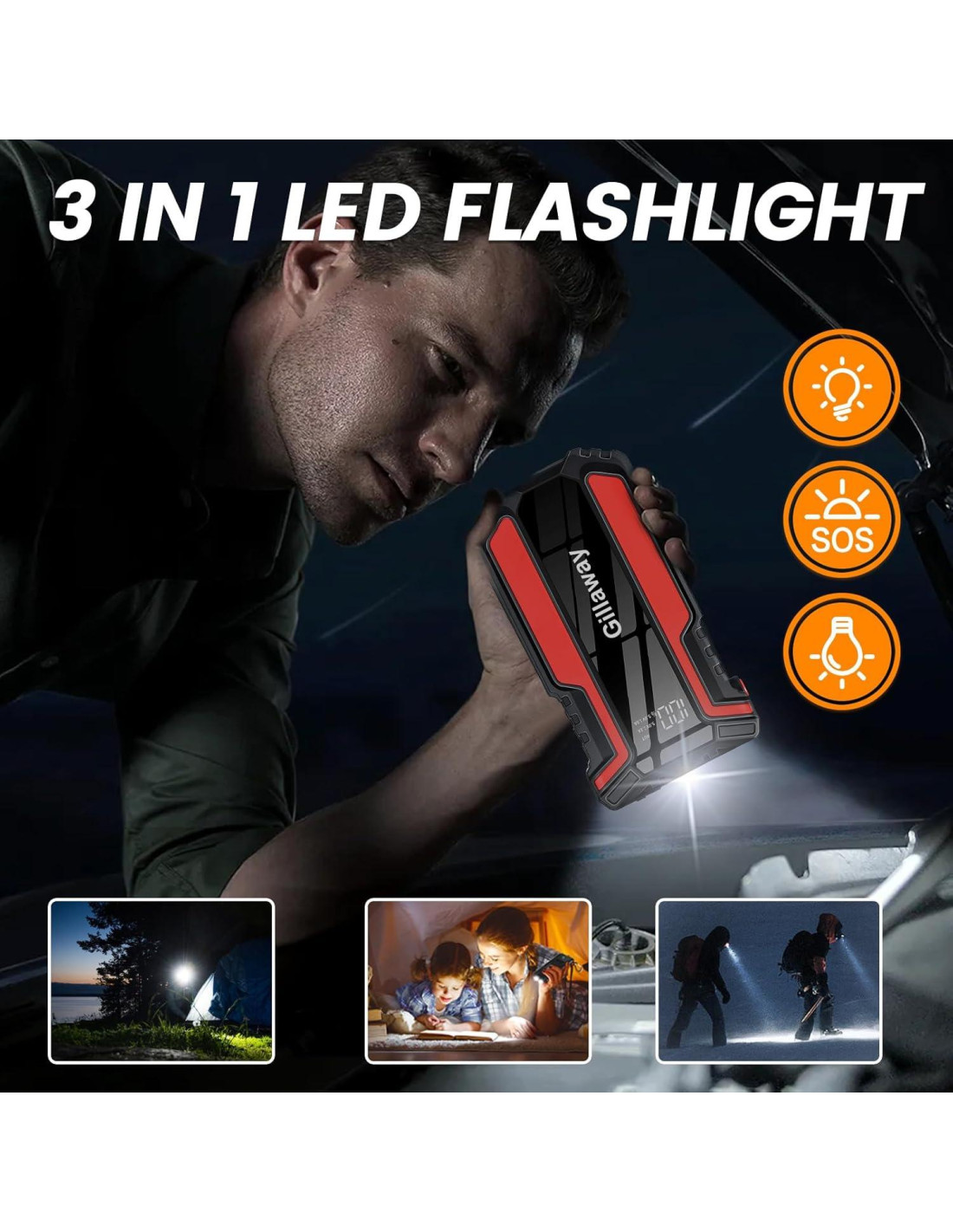 - Rendimiento Poderoso Gillaway 016 Arrancador de Coche proporciona un super corriente pico de 5000A. fácilmente arranca coches de 12V (incluyendo híbridos), como motocicletas, ATVs, UTVs, cortadoras de césped, motos de nieve en solo unos minutos (hasta 9.0L gasolina o 7.0L motor diésel) hasta 50 veces con una carga completa.